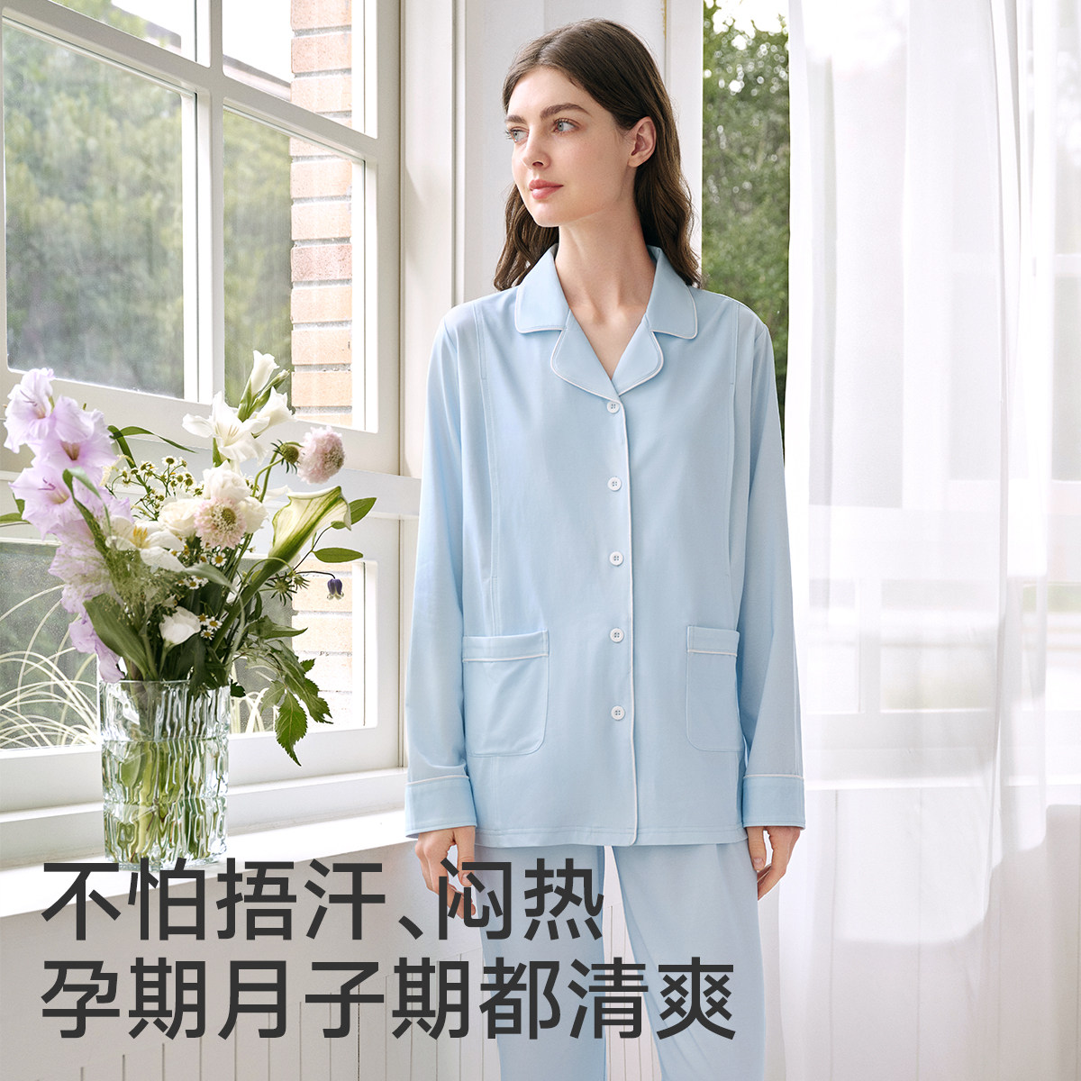 婧麒月子服纯棉产后秋冬孕妇睡衣哺乳喂奶产妇怀孕期家居服套装女