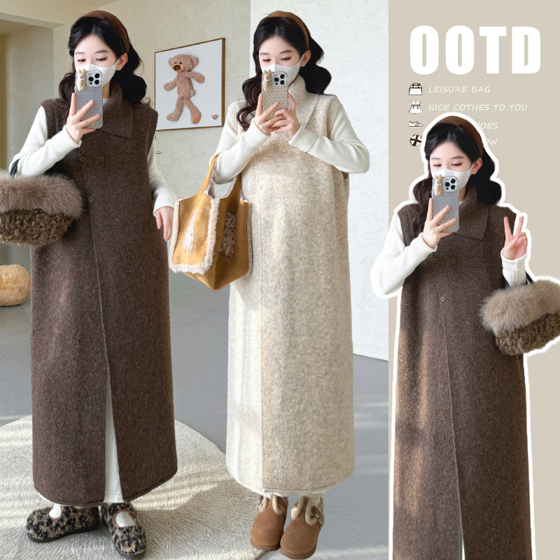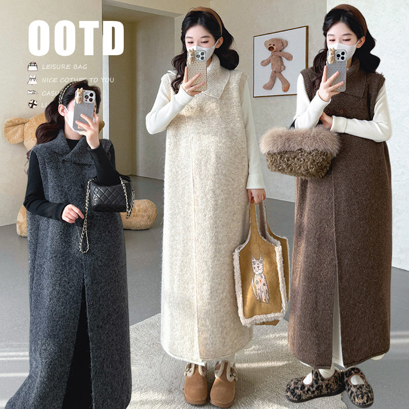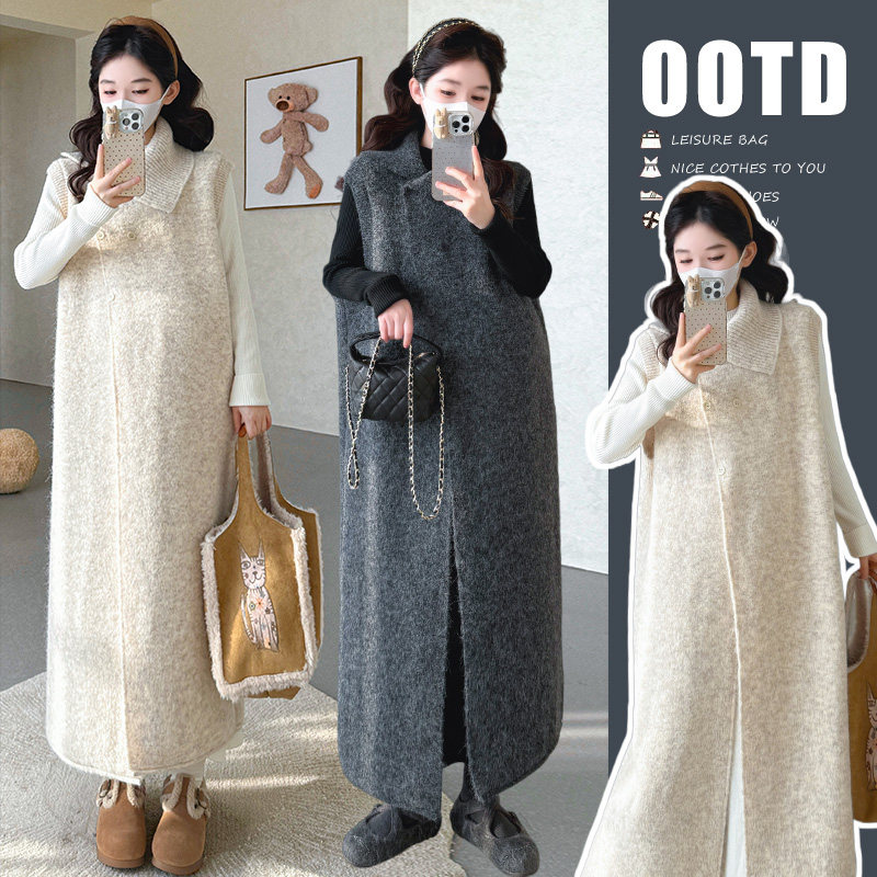 婧麒孕妇连衣裙2025新款显瘦加厚不显怀长裙子法式高级感孕期冬装
