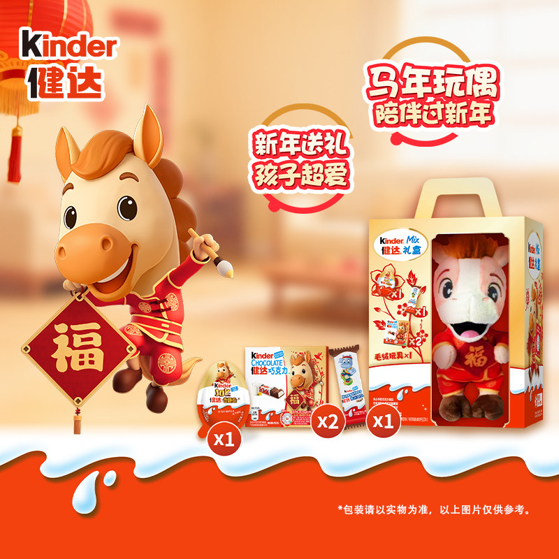 Kinder健达新年玩偶零食组合内含奇趣蛋快乐河马饼干健达巧克力