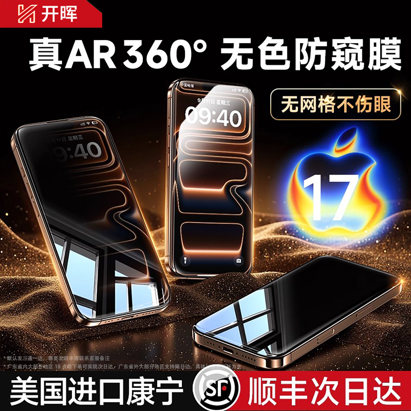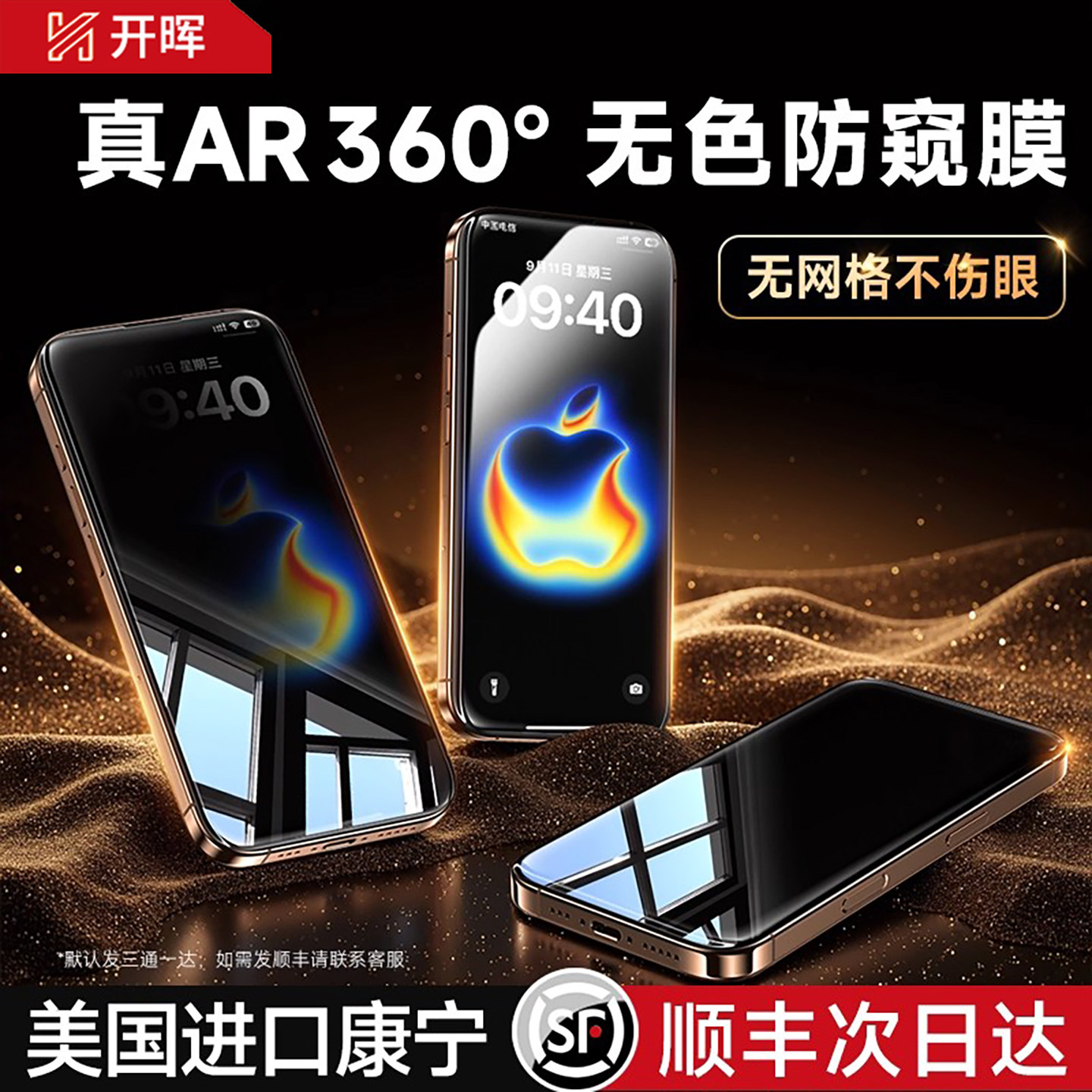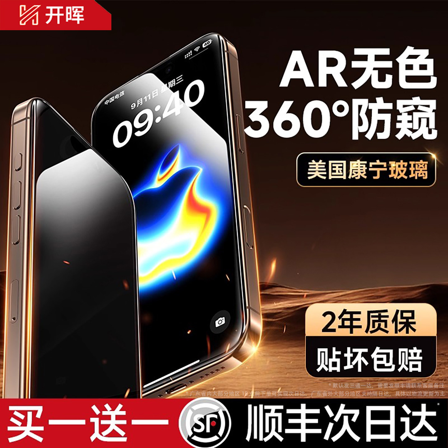 【美国康宁360°无色防窥】开晖适用苹果17promax防窥膜iPhone16pro防偷窥15钢化膜14plus贴13高清11/12全屏x