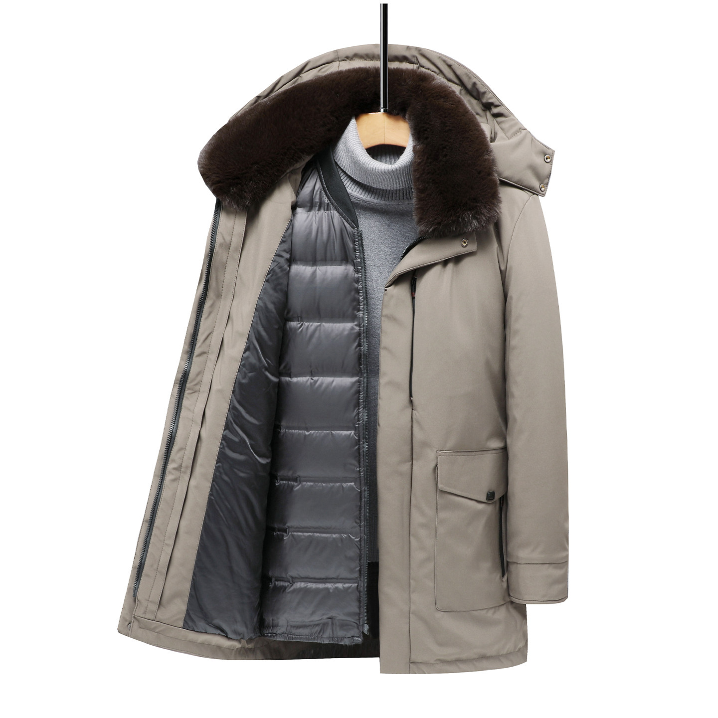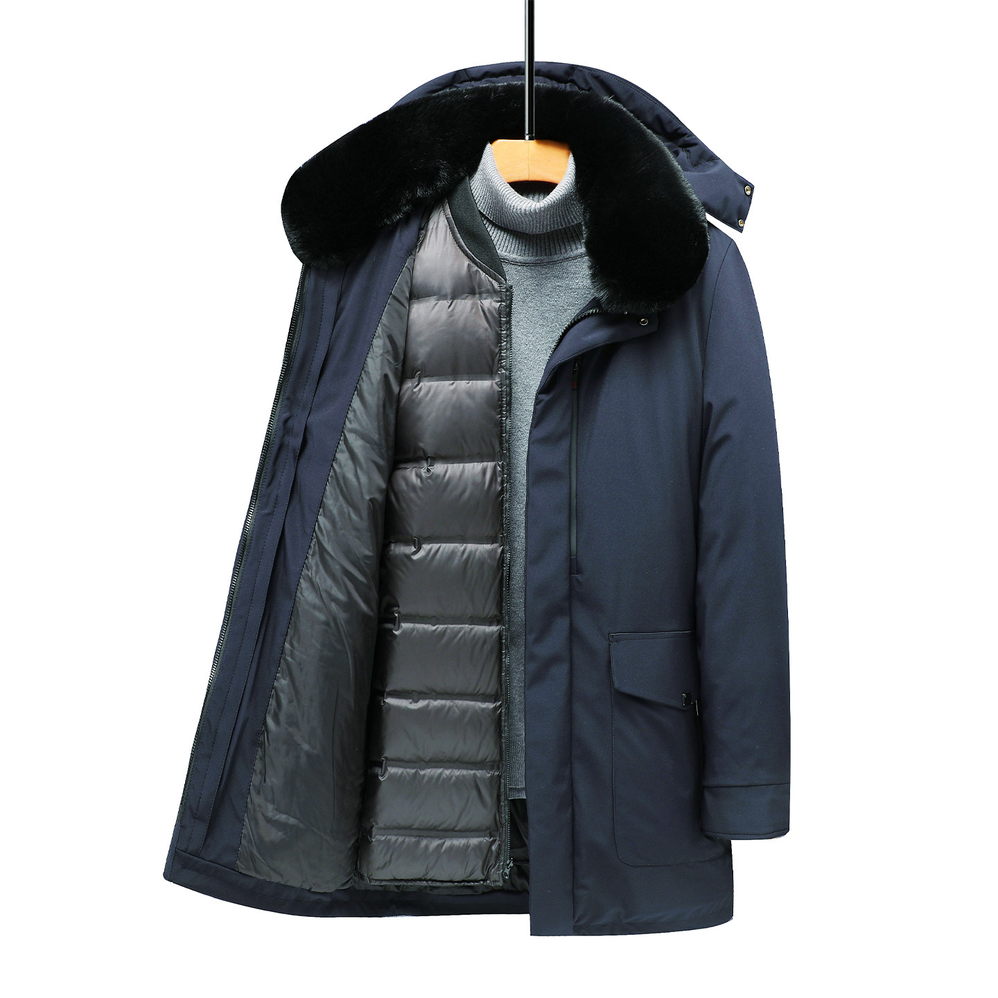 红蜻蜓可脱卸男士冬季羽绒服中长款休闲保暖新款爸爸冬装连帽外套