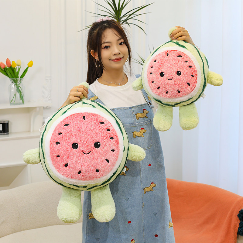 可爱跑跑西瓜毛绒玩具公仔呆萌玩偶陪睡安抚布娃娃生日礼物女水果