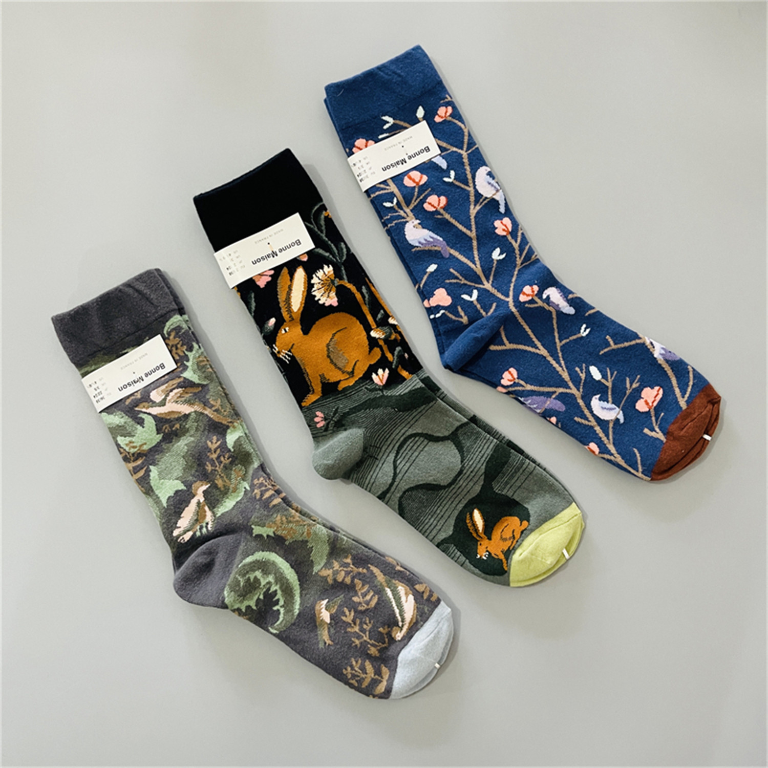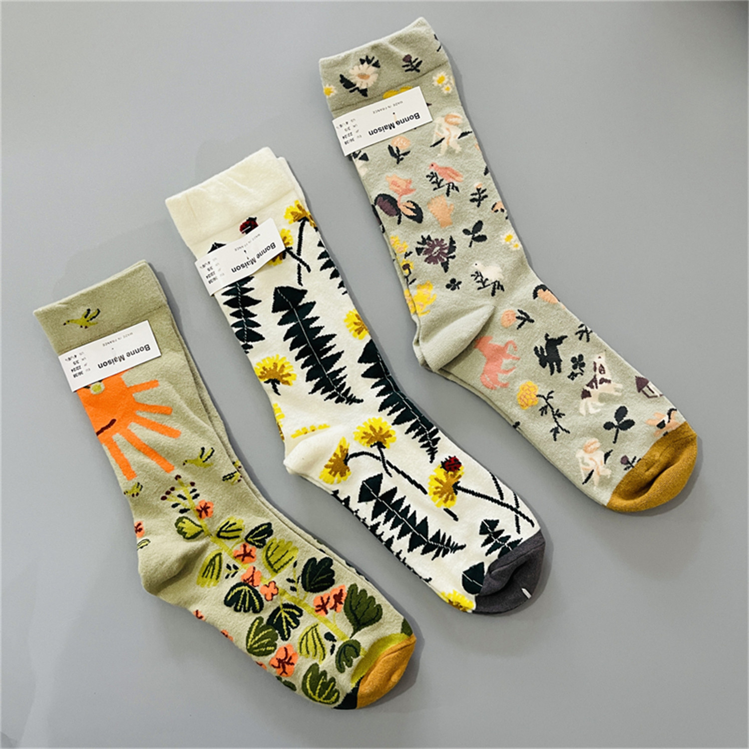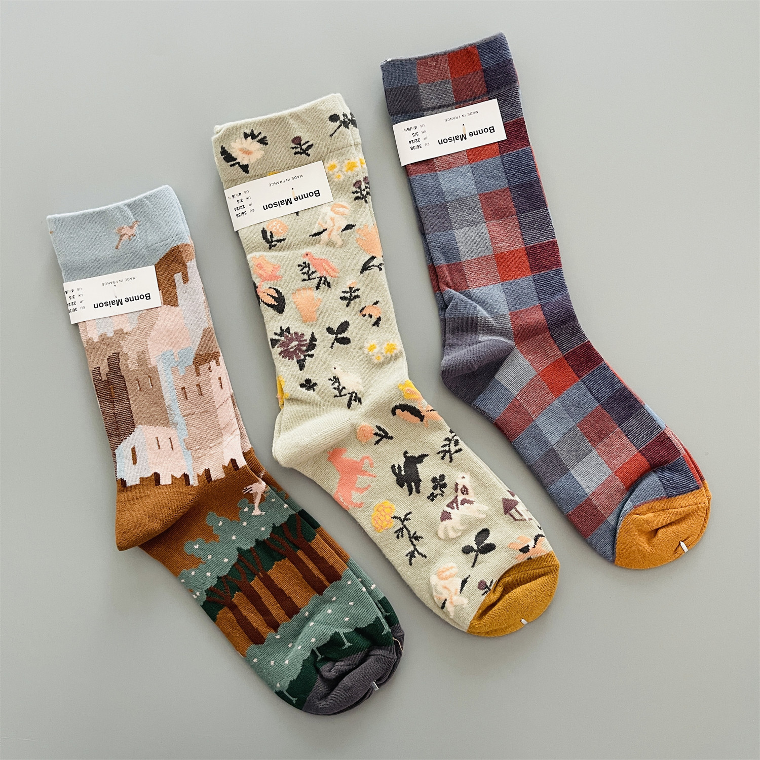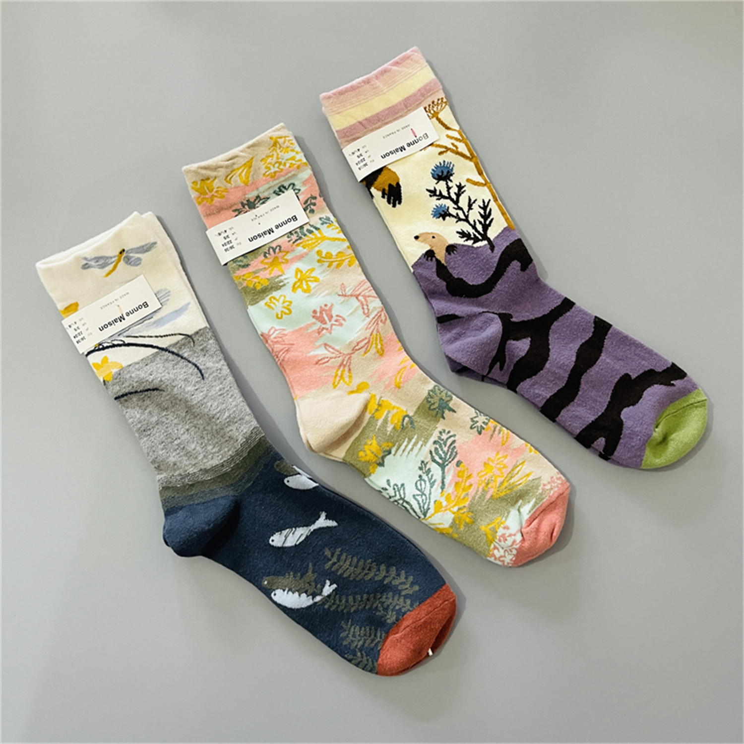 法国小众女士中筒袜棉袜四季款趣味油画风多巴胺彩色袜子网红潮袜