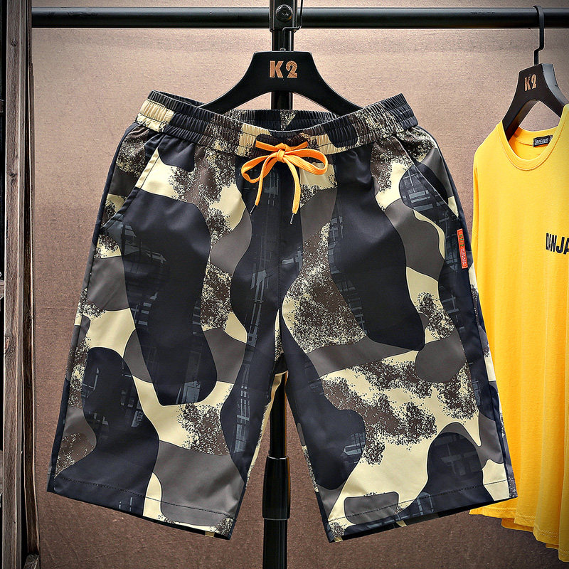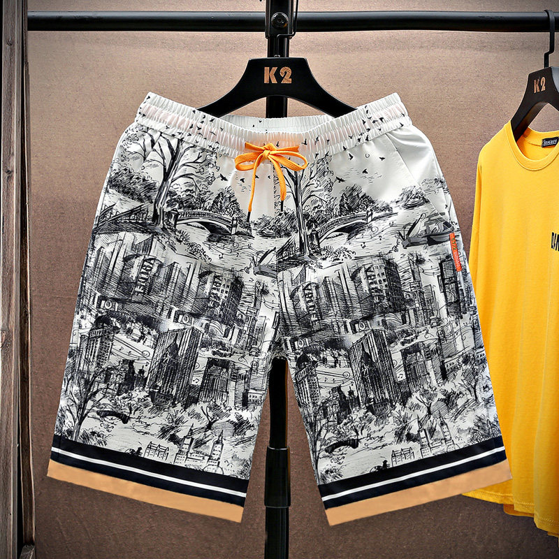 男士短裤夏季外穿海边沙滩裤宽松薄款冰丝休闲花裤子男款五分裤潮