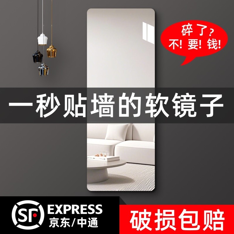 全身镜穿衣镜贴墙自粘家用免打孔女生卧室衣柜门门后亚克力软镜子