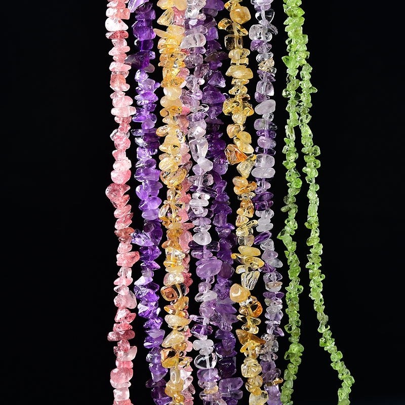天然有孔水晶碎石链子散珠半成品带孔宝石原石diy手链项链饰品