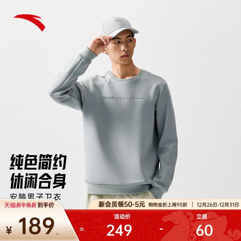 安踏圆领套头卫衣男装2025冬季新款纯色简约运动服上衣152537705