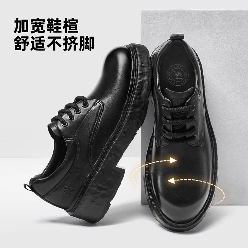 骆驼男鞋皮鞋2025秋季新款英伦男士正装商务结婚鞋厚底大头德比鞋