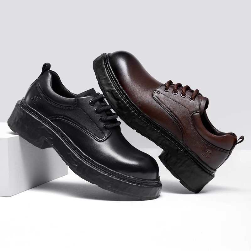 MRA棕色德比鞋男款2025新款秋季低帮大黄靴厚底增高大头工装皮鞋