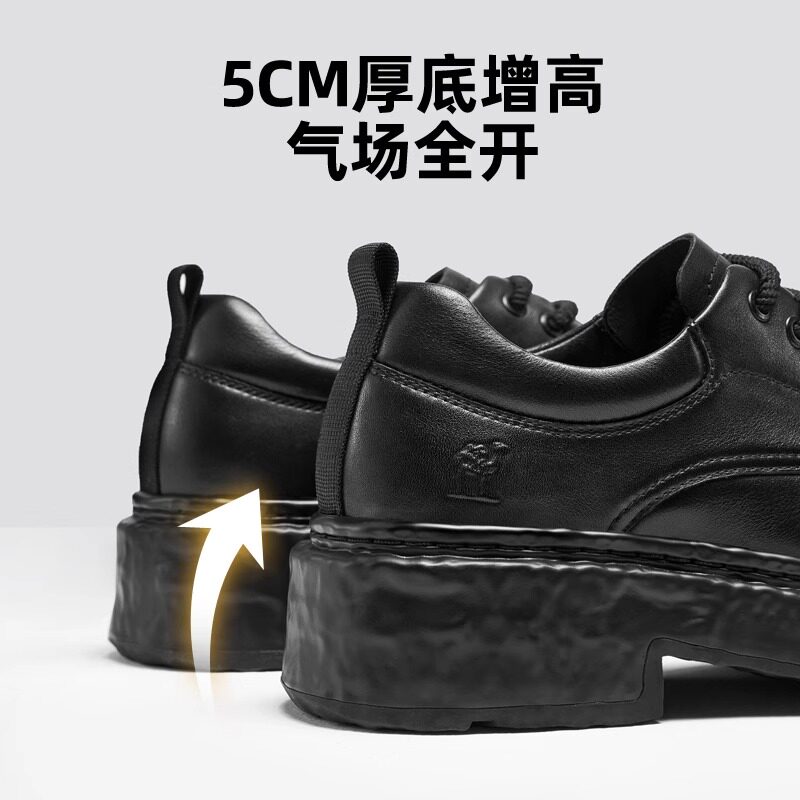 皮鞋男款高级感厚底增高英伦通勤大头德比鞋男冬季新款低帮马丁靴