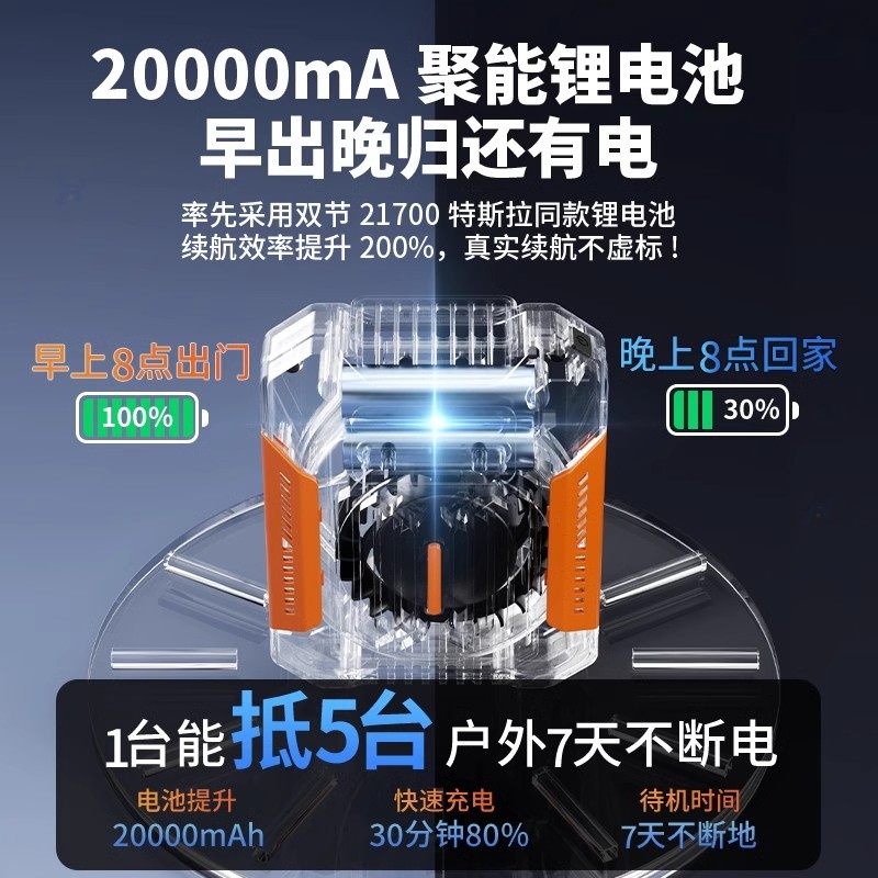 挂腰户外风扇挂脖随身便携式夹腰间消暑降温神器高温工地充电强力小风扇夏天季厨房制冷空调衣服穿戴超长续航