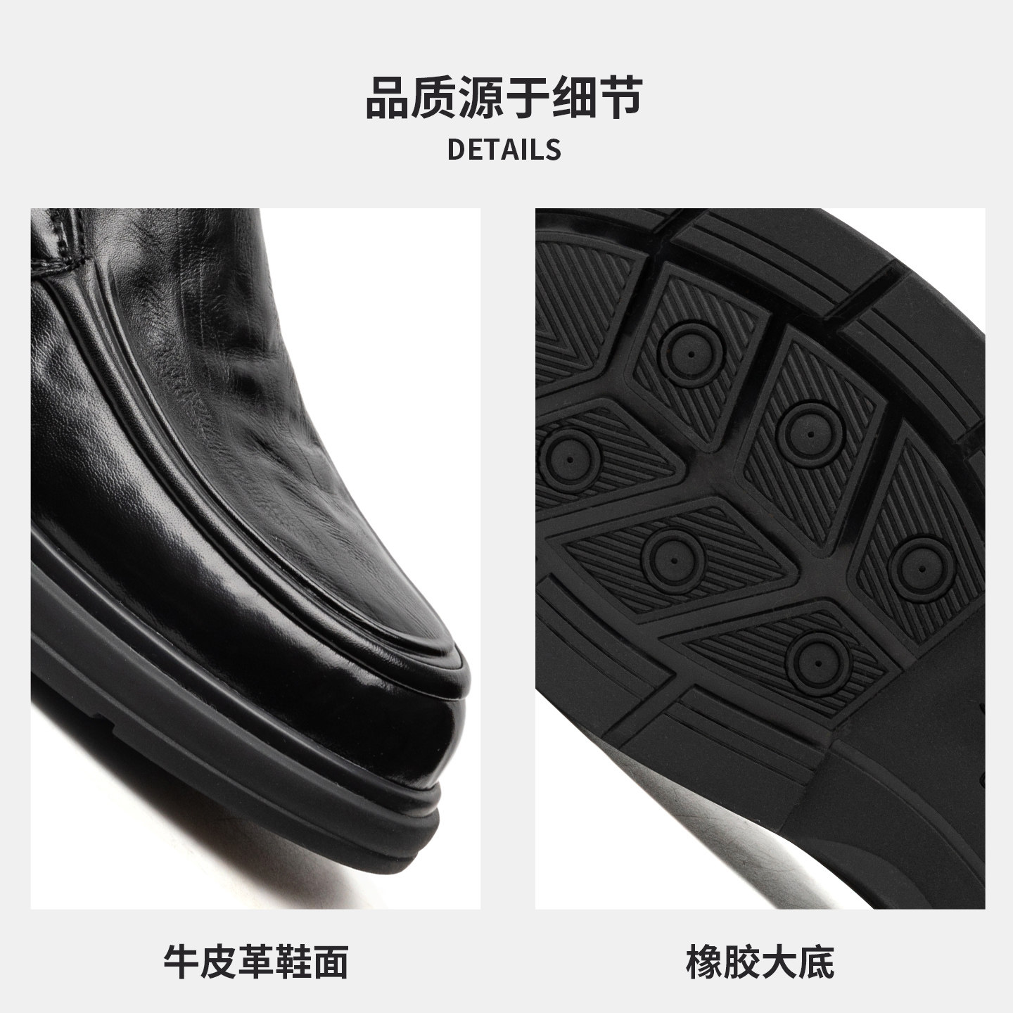 【小牛皮】青润chioryn袋鼠鞋男黑色真皮增高厚底休闲通勤风皮鞋