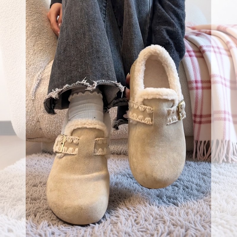 Misscat原创加棉加绒舒适保暖平底棉鞋女款冬季一脚蹬舒适勃肯鞋