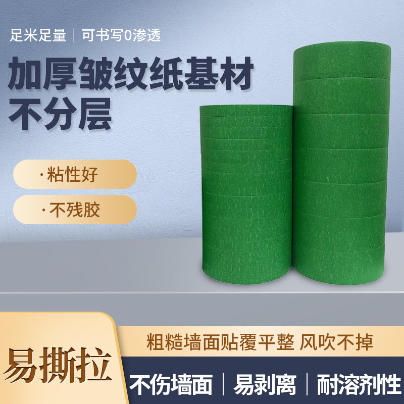 50米外墙真石漆专用绿色美纹纸胶带耐高温喷漆遮蔽美缝分色纸胶带