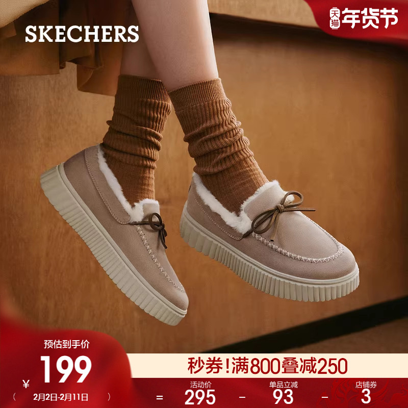 斯凯奇奶贝鞋|冬季女鞋加绒保暖乐福鞋豆豆鞋玛丽珍鞋蝴蝶结单鞋