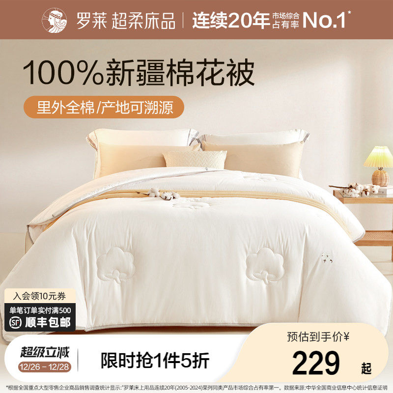 罗莱家纺棉被子被芯100%新疆全棉棉花加厚冬被春秋被四季通用保暖