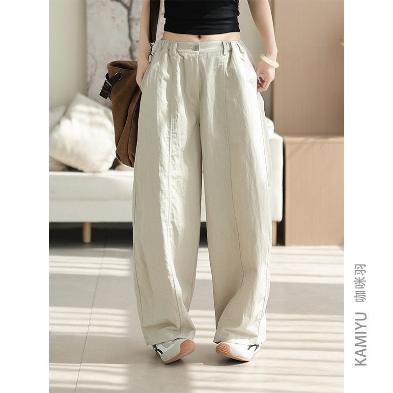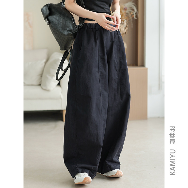 咖咪羽天丝休闲裤女秋季新款黑色直筒宽松文艺洋气阔腿女装哈伦裤