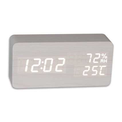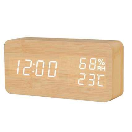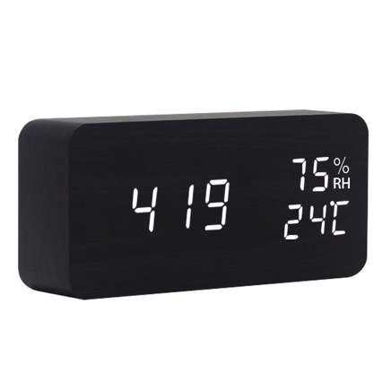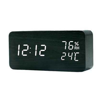 现货 温湿度LED木头钟创意木质数显座钟智能声控木纹电子闹钟