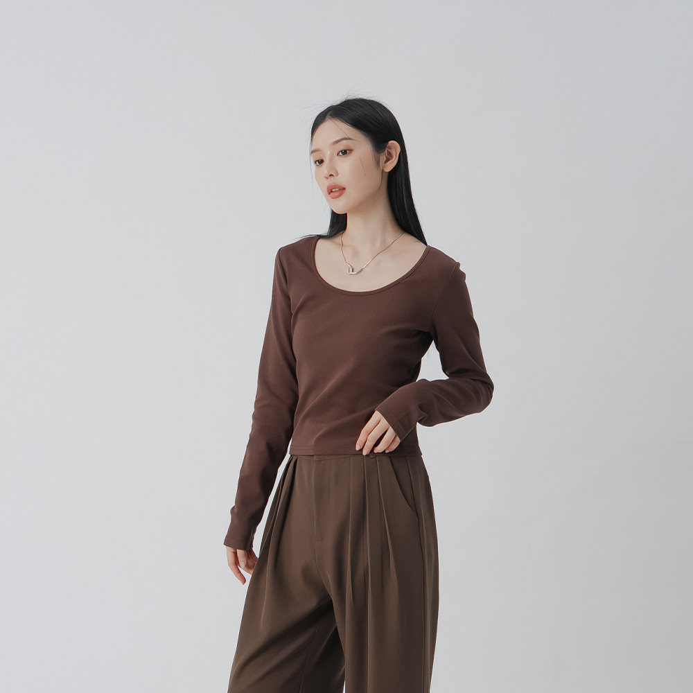 QUEENSHOP 2025秋冬女装蕾蒂简约素面U领合身上衣-咖啡01099319