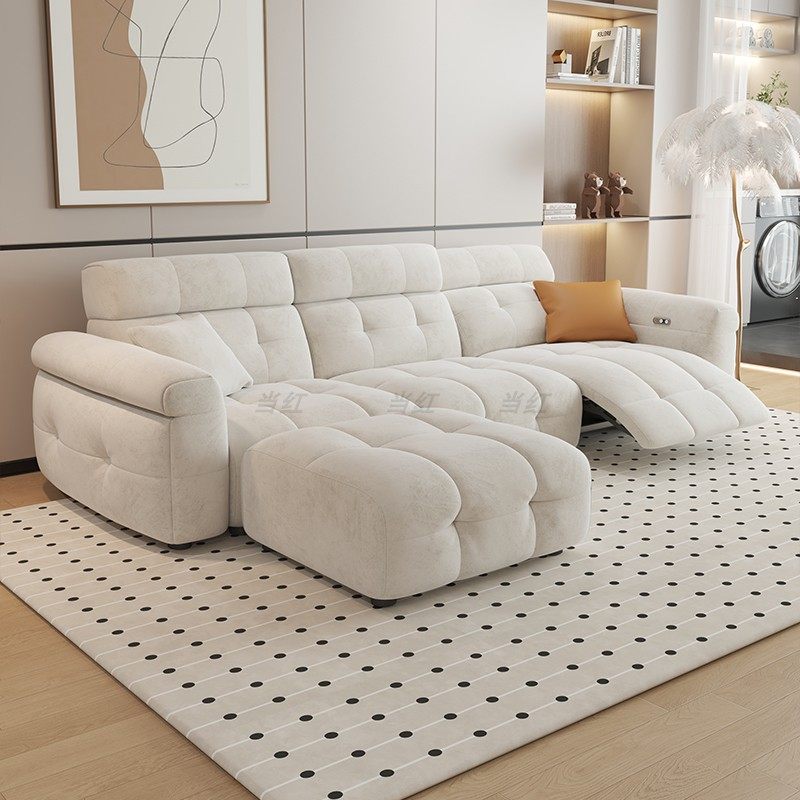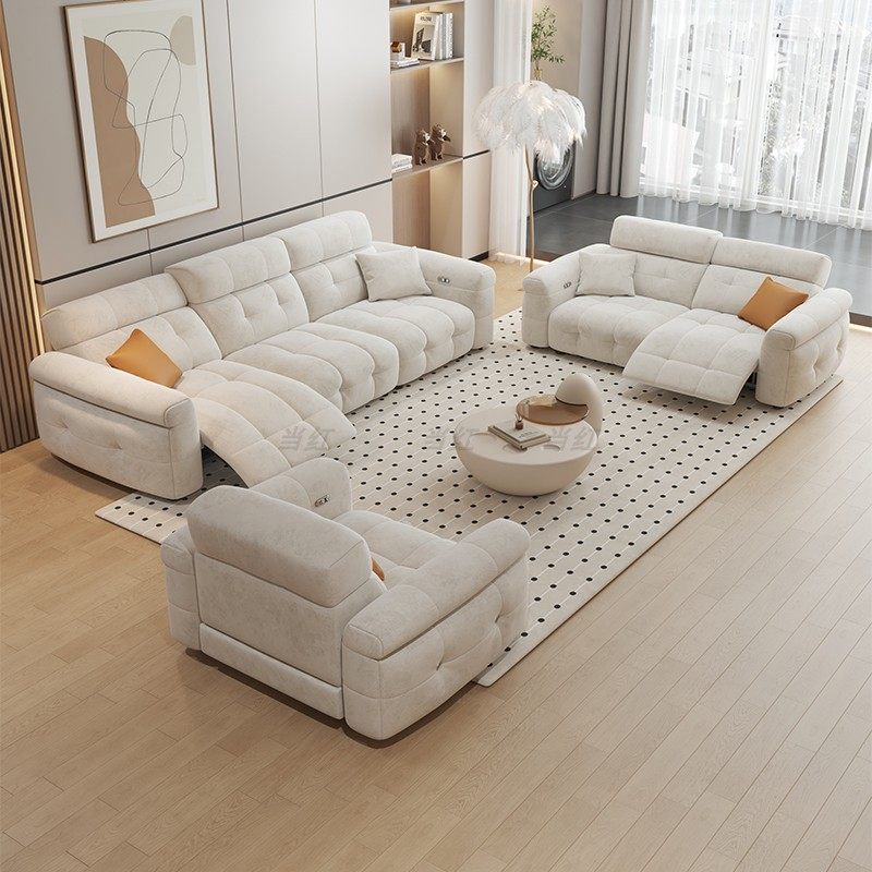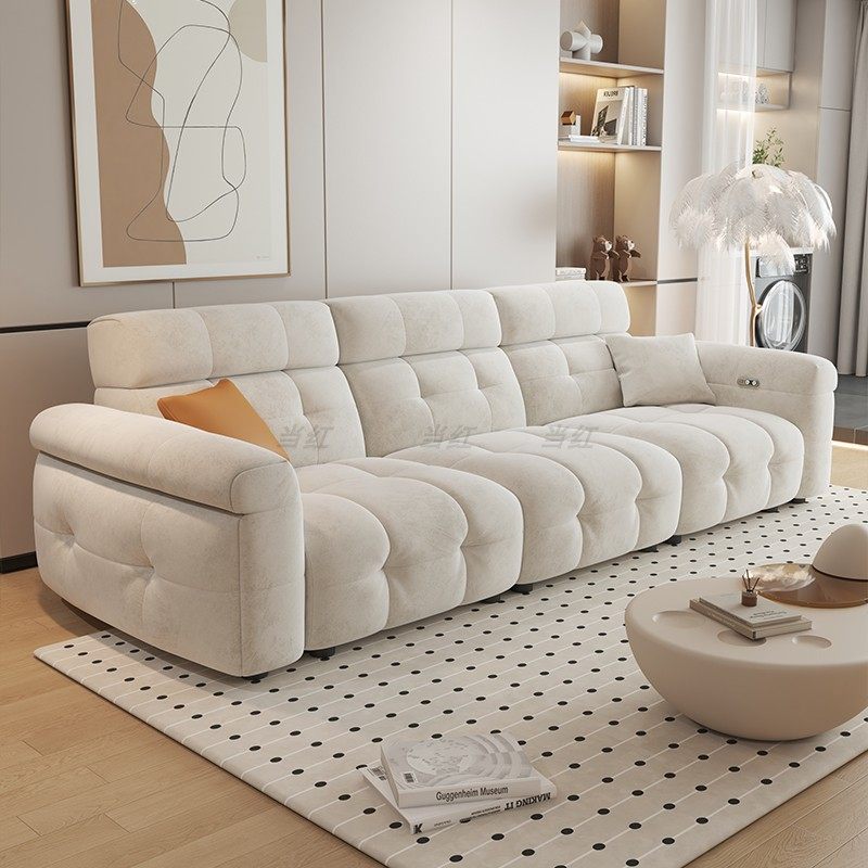 现代简约太空电动舱功能客厅猫抓布三人小户型法式奶油风布艺沙发