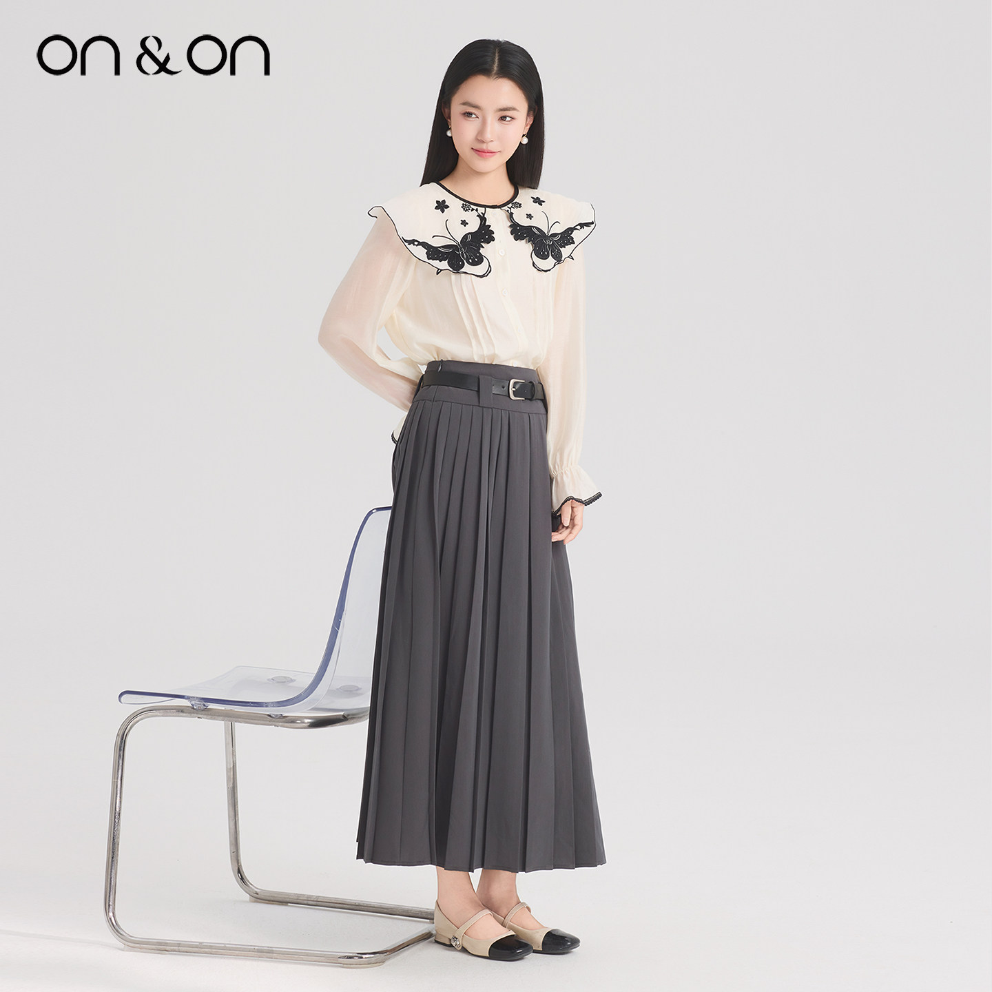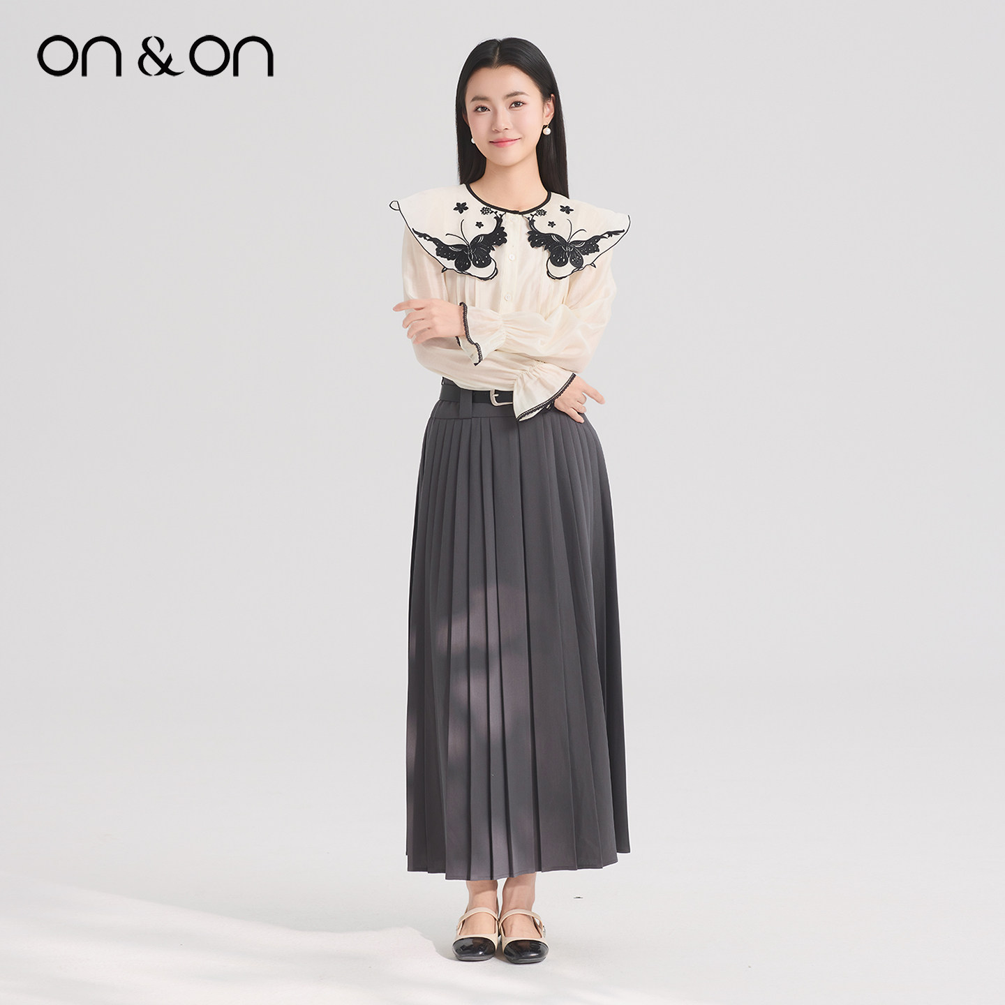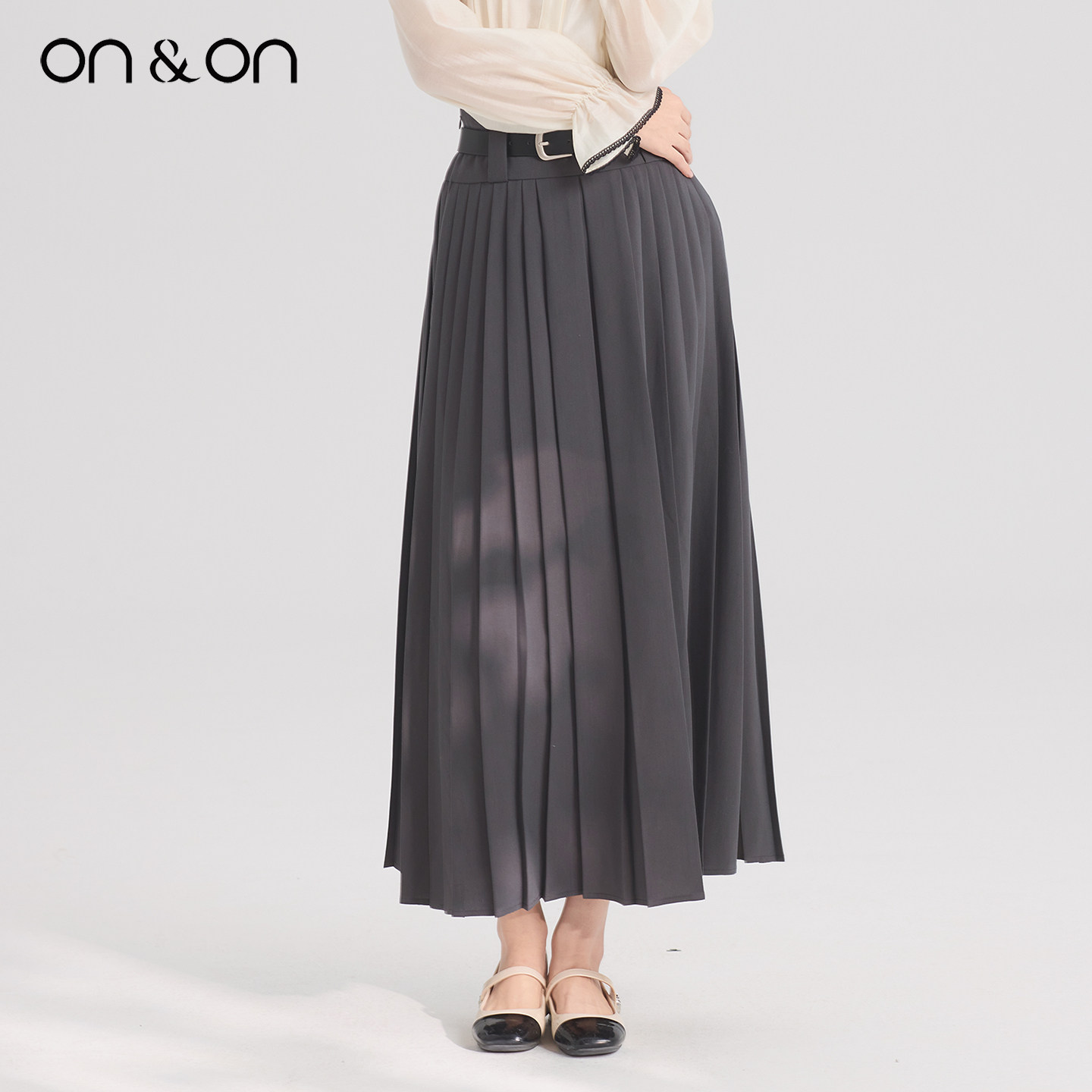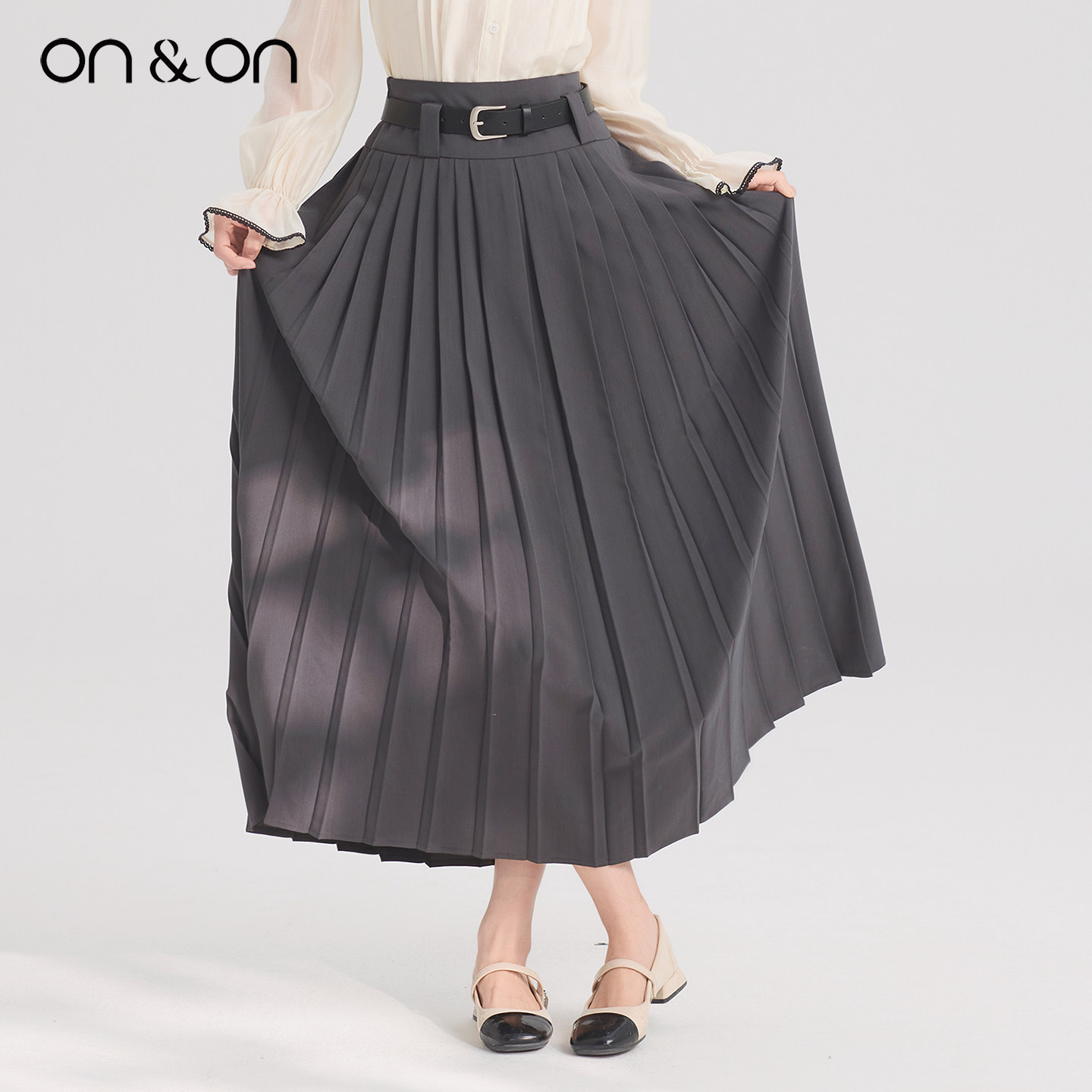 ON&ON/安乃安2026春季新款韩系系带高腰时尚气质百搭压褶半身裙