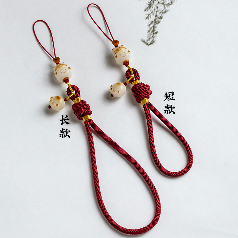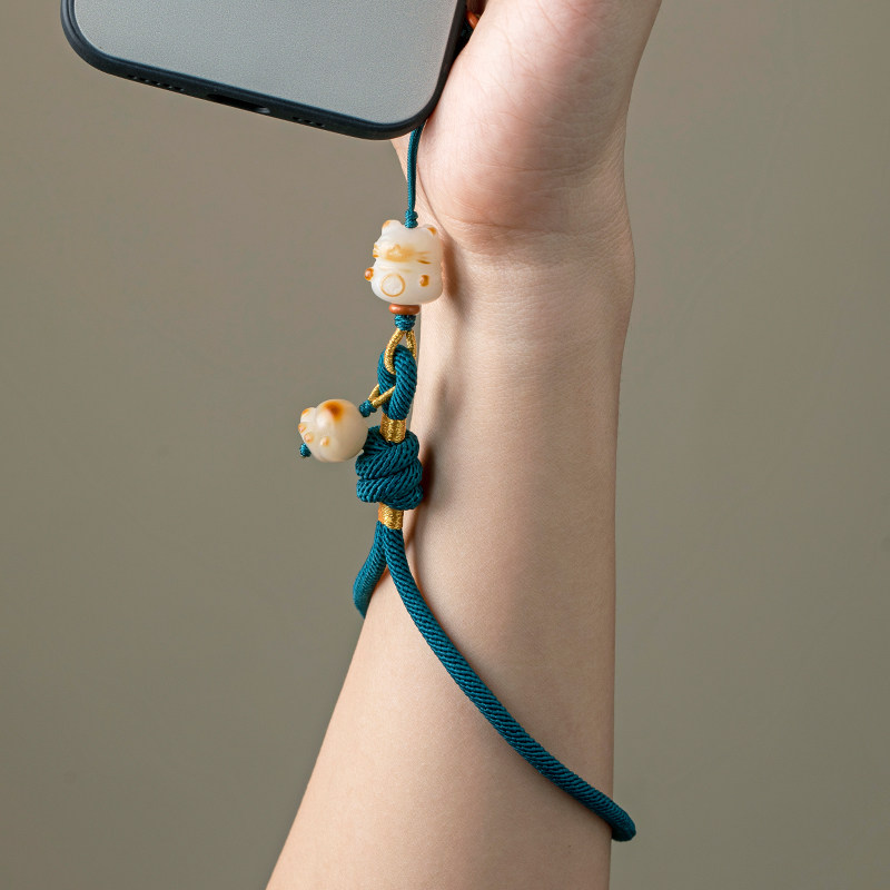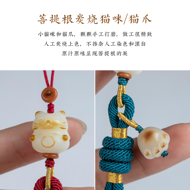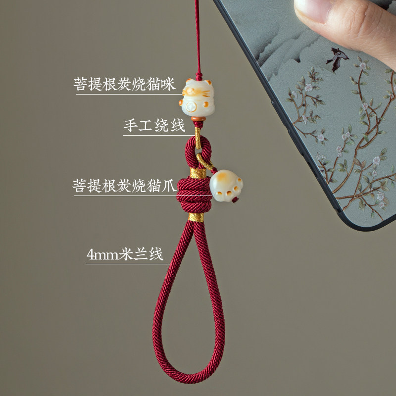 加噜原创手工编织手机链挂绳防丢套手白玉菩提炭烧招财猫爪吊坠女文艺挂件精致U盘包包挂饰短款结实耐用饰品