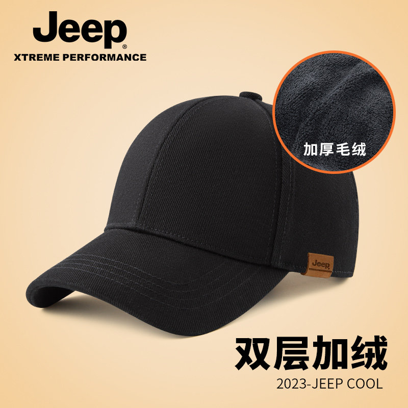 jeep吉普男士秋冬季加绒棒球帽保暖纯色硬顶鸭舌帽男防风冬天帽子