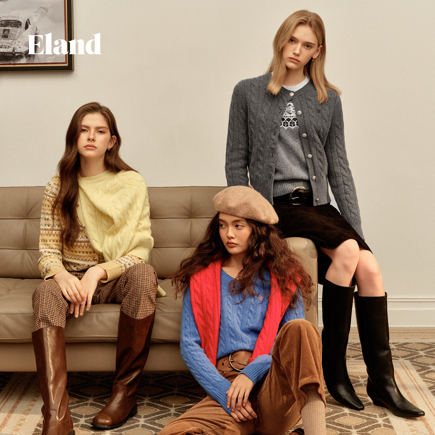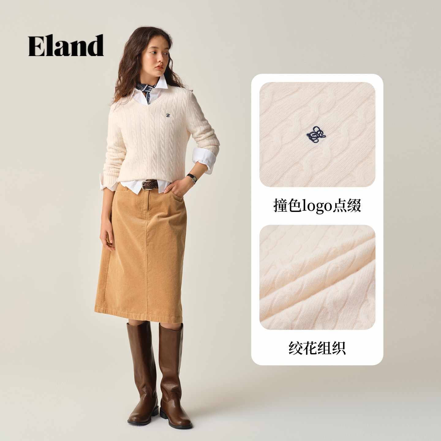 【绒感棉花糖含山羊绒】ELand衣恋毛衣女套头绞花针织衫2025冬新