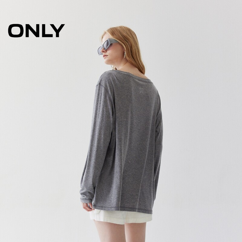 ONLY2026春季新款上衣舒适莱赛尔绵羊毛宽松落肩圆领长袖T恤女