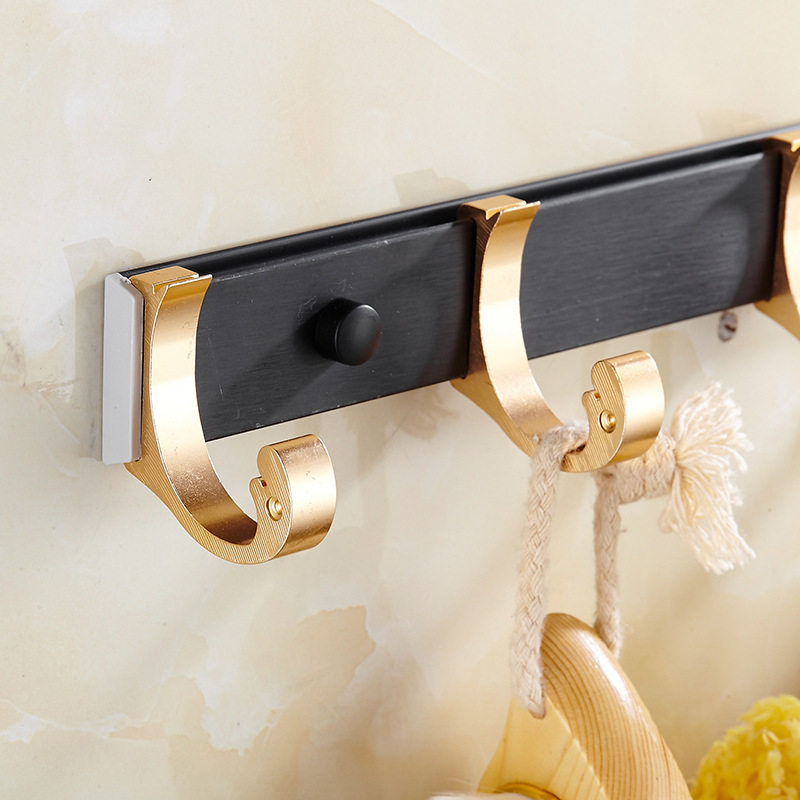 免打孔黑色太空铝衣钩卫浴五金挂件挂金色衣钩毛巾挂钩门后壁挂排
