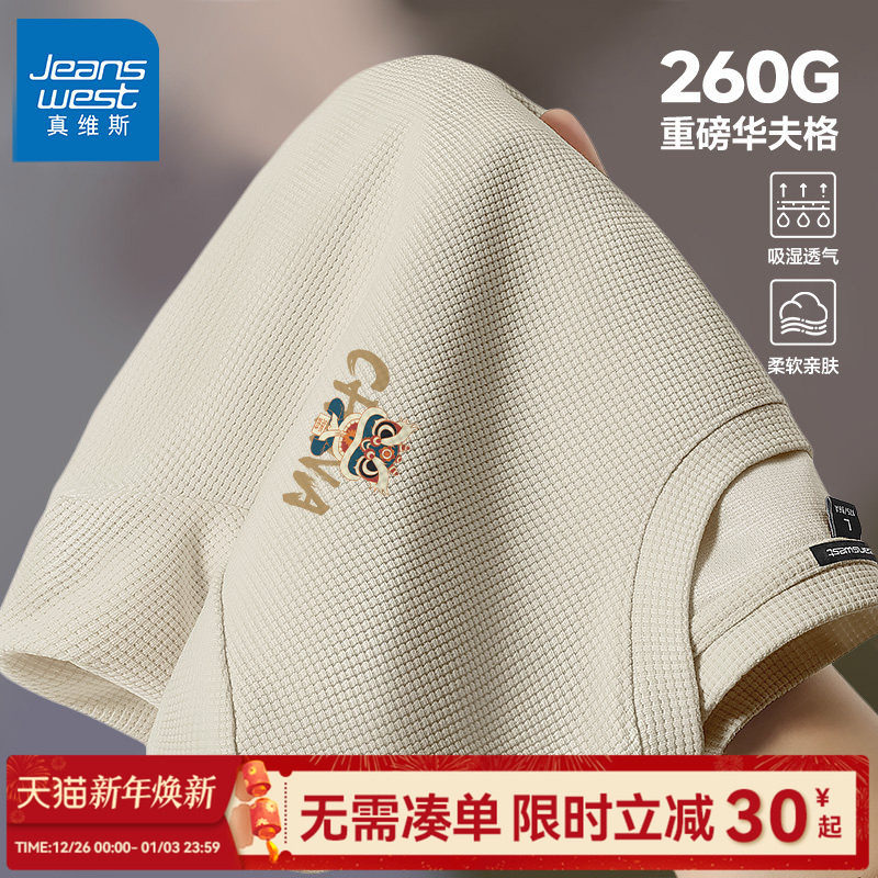 GV真维斯浅色男士短袖t恤夏季新款国潮华夫格体恤衫男生透气半袖C