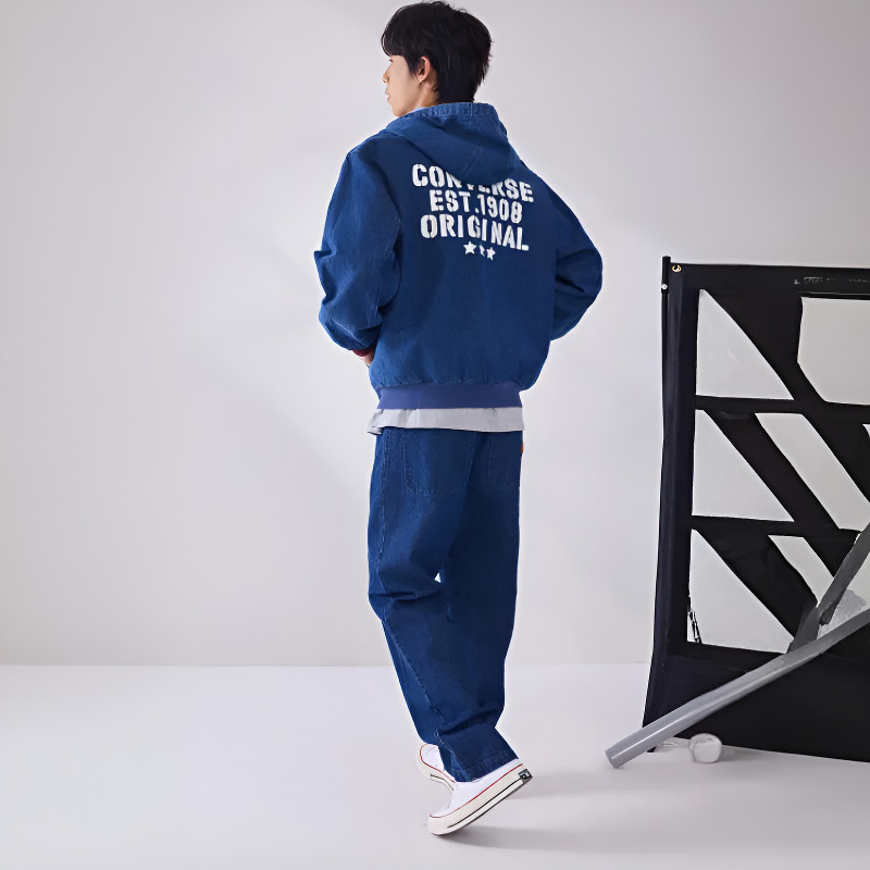 Converse匡威男子夹克春新品连帽后背印花宽松牛仔夹克MCJ411-UHA