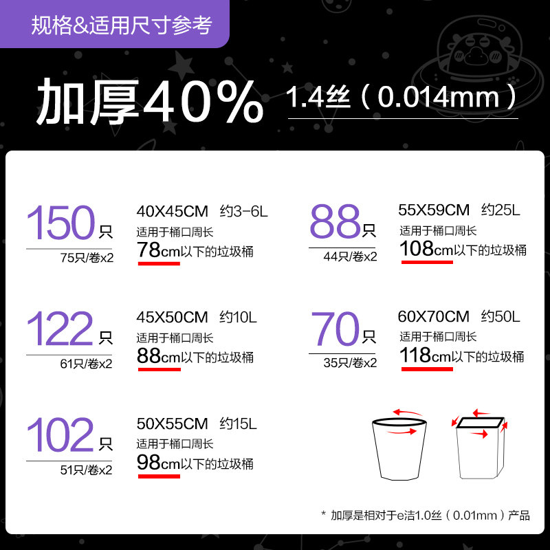 下拉详情领优惠包邮e洁抽绳袋45*50cm垃圾袋厨房手提式家用多规格