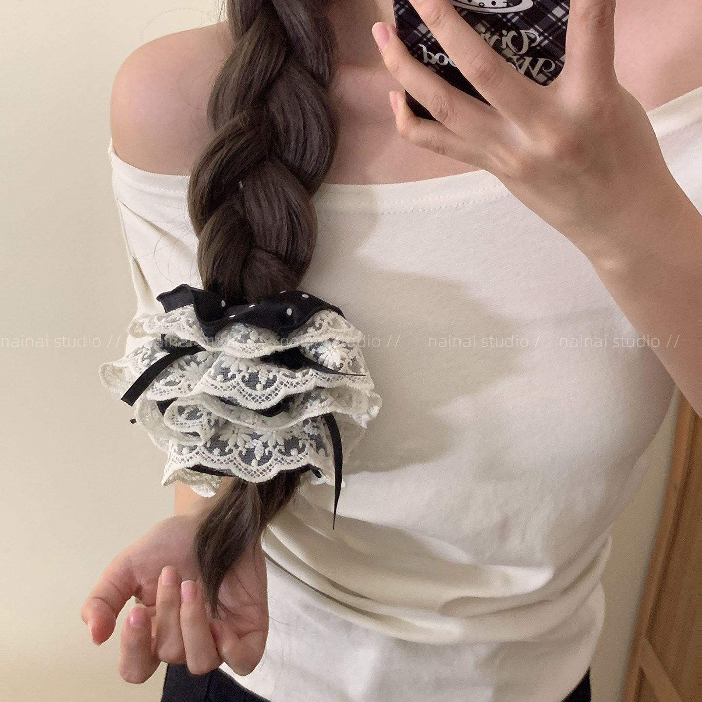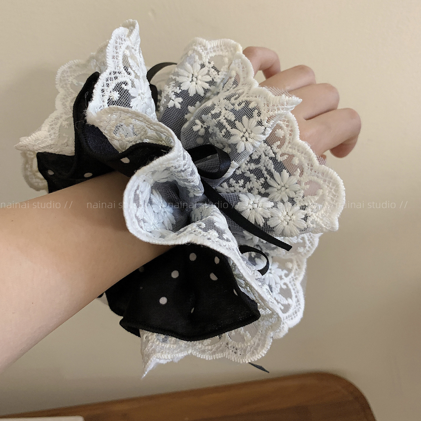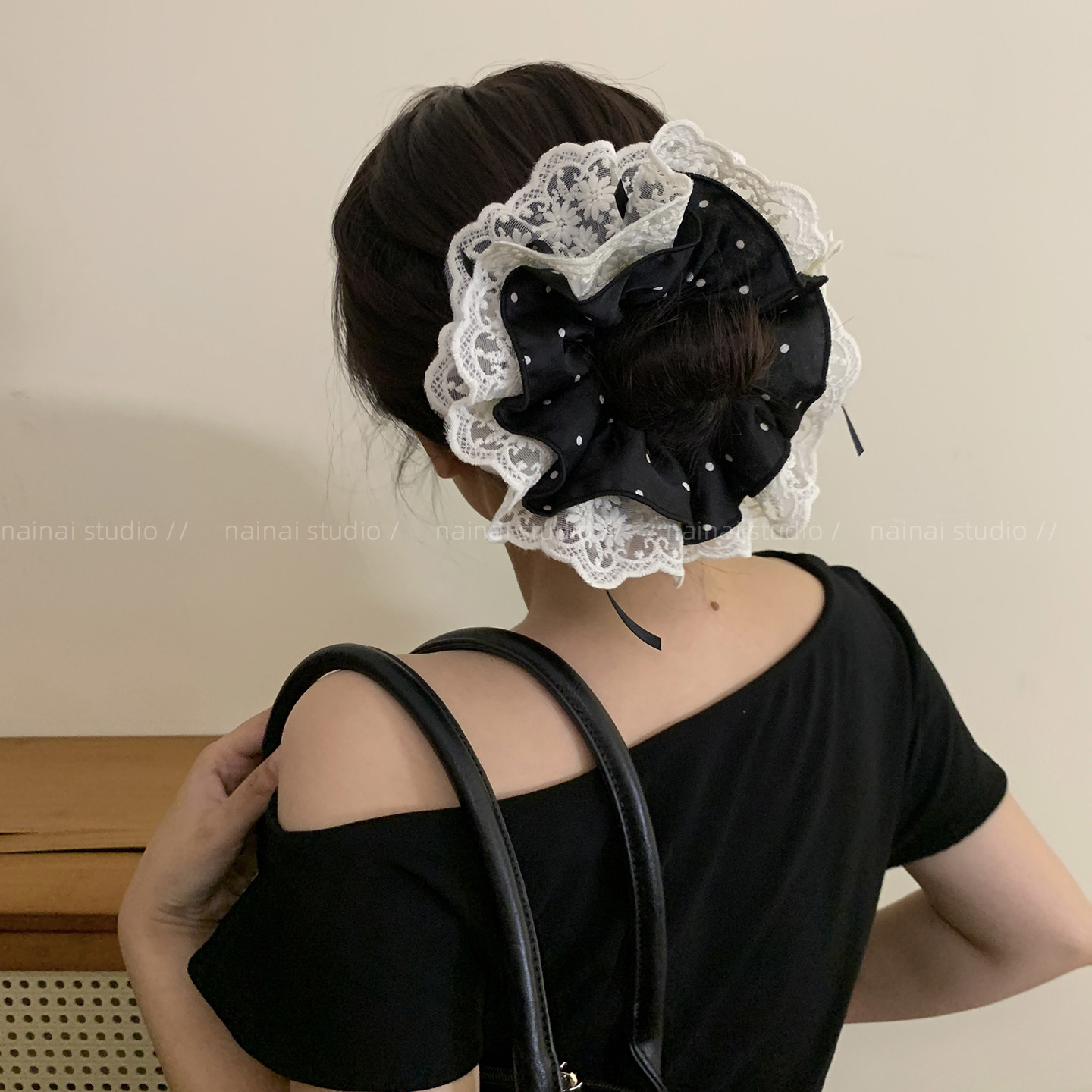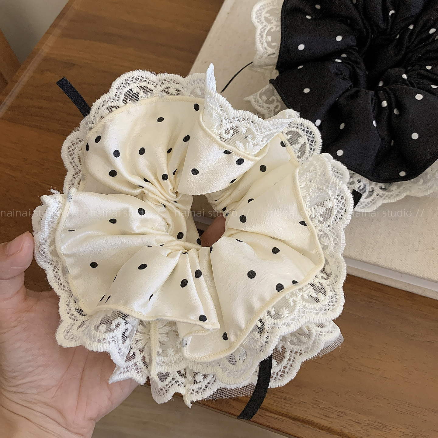 波点大肠发圈~蕾丝花边蝴蝶结少女复古法式丸子头扎头发发绳头绳