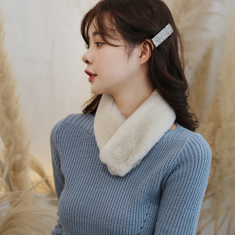 獭兔毛围脖女秋冬季优雅磁扣韩版百搭真兔毛皮草毛围领毛毛围巾小