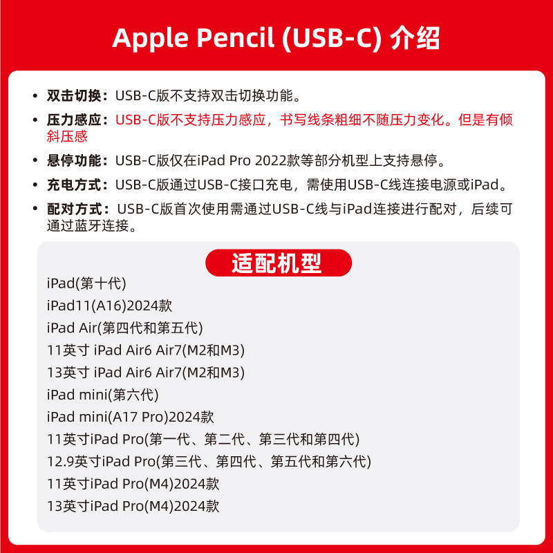 苹果Apple Pencil一代二代pencil pro原装正品手写笔(USB-C)压感