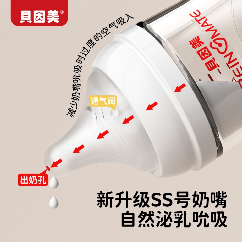贝因美奶瓶新生儿玻璃0-6到10月份宝宝初生专用防胀气奶嘴母乳