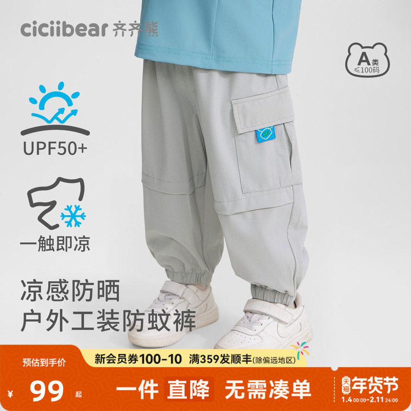 [户外凉感防晒裤]齐齐熊男童防蚊裤夏季薄款宝宝裤子运动裤工装裤