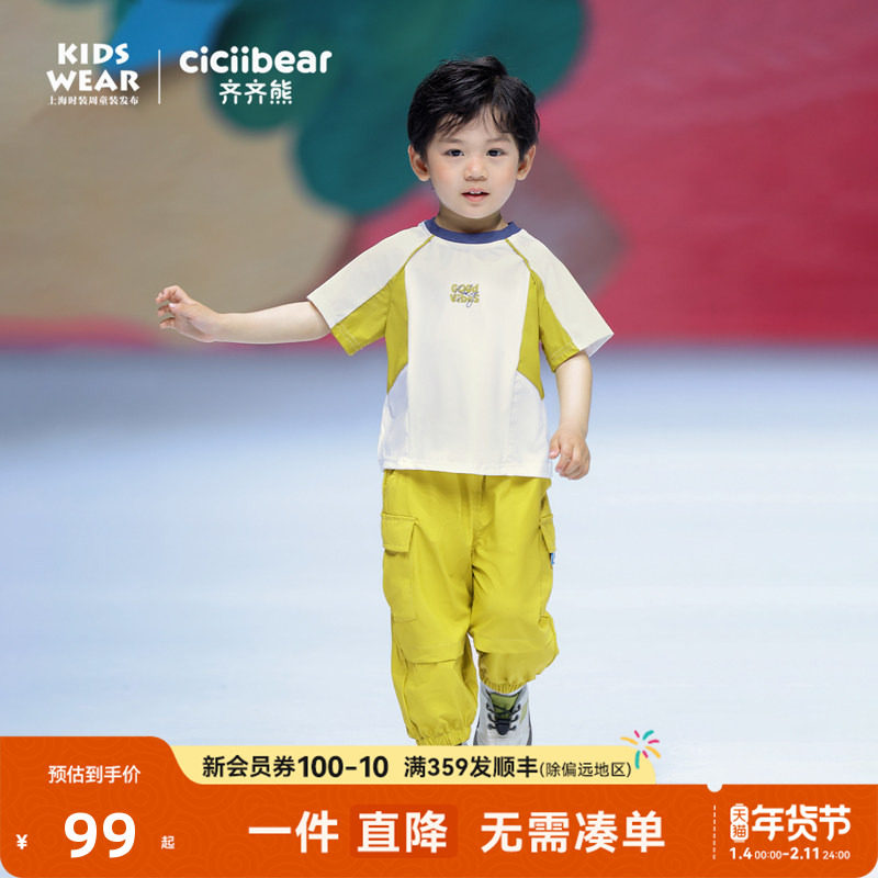 齐齐熊宝宝凉感提花砂砂格透气工装防蚊裤