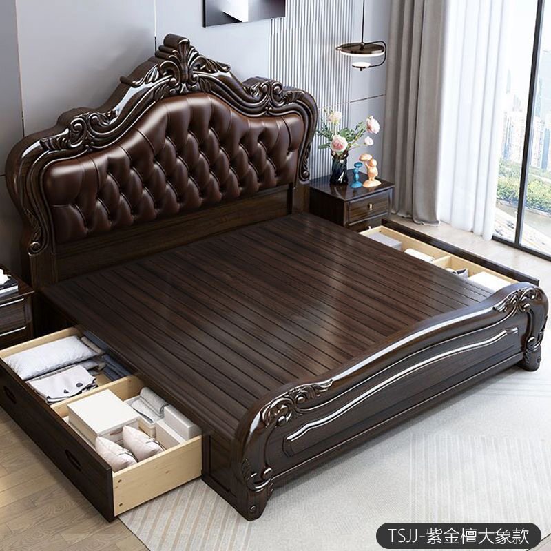 紫金檀木实木床1.8米主卧婚床现代简约1.5米轻奢欧式高箱储物床
