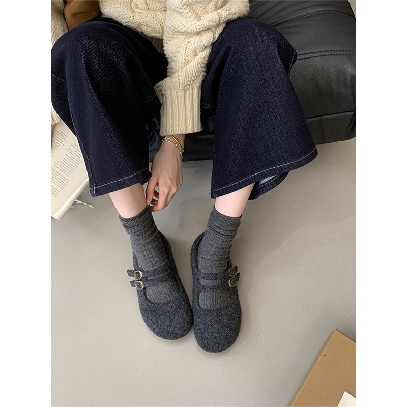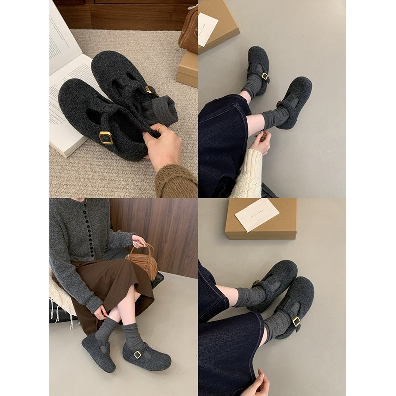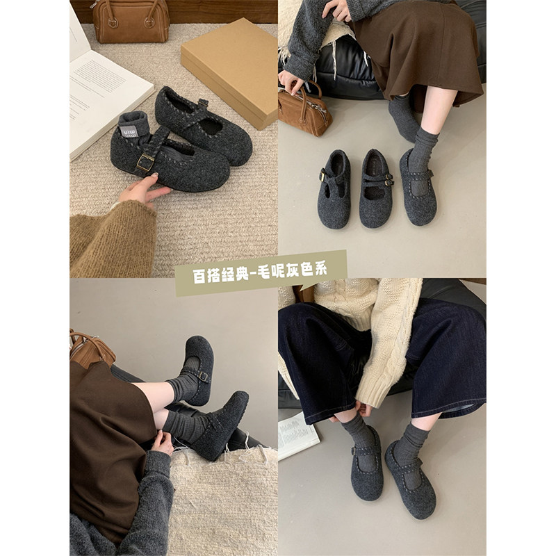 内增高毛呢加绒玛丽珍鞋2025新款勃肯鞋灰色毛毛鞋女冬单鞋浅口