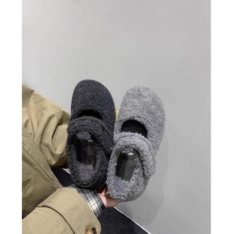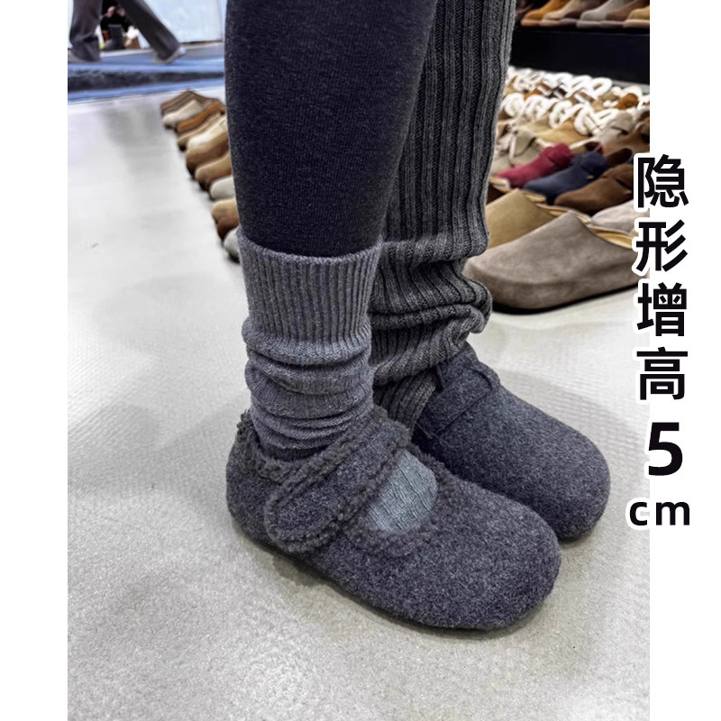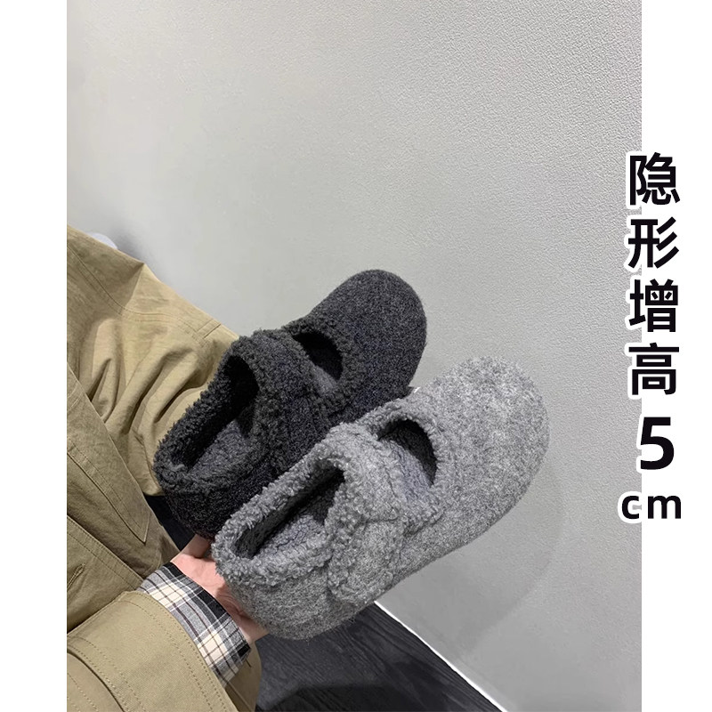 内增高5cm配裙子保暖加绒玛丽珍毛毛鞋女秋冬毛绒棉鞋毛呢料软底