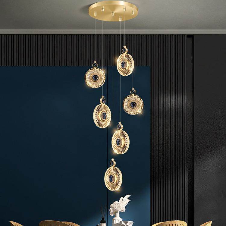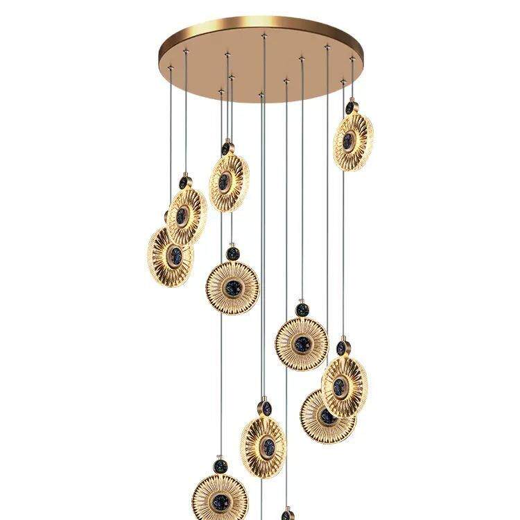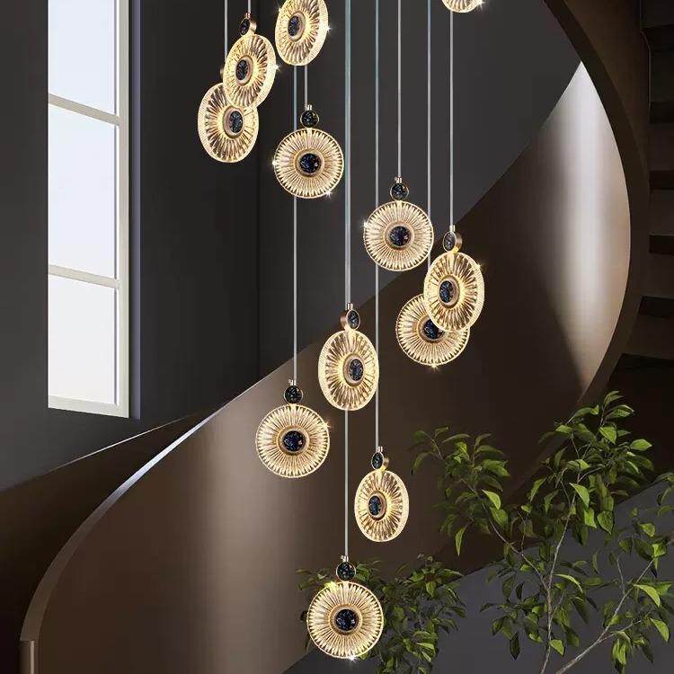 复式楼大吊灯长挑空阁楼大堂工程别墅客厅中空轻奢圆形贝壳楼梯灯