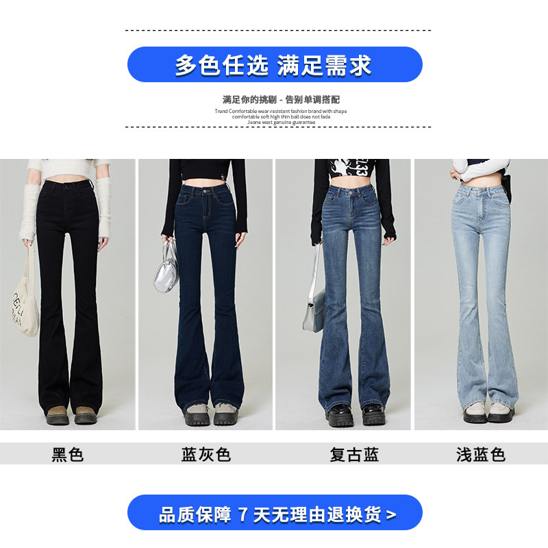 王家有鱼加绒复古微喇裤爆款时尚显瘦女裤2025秋冬新款百搭牛仔裤