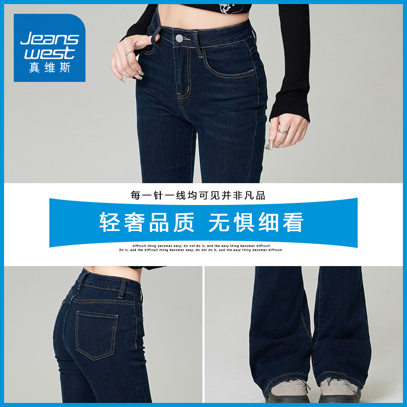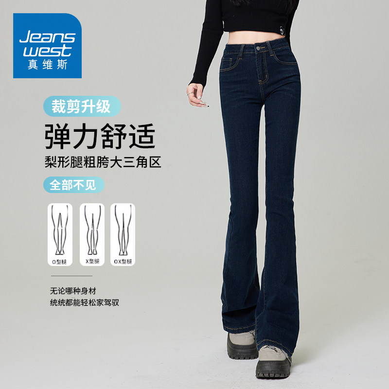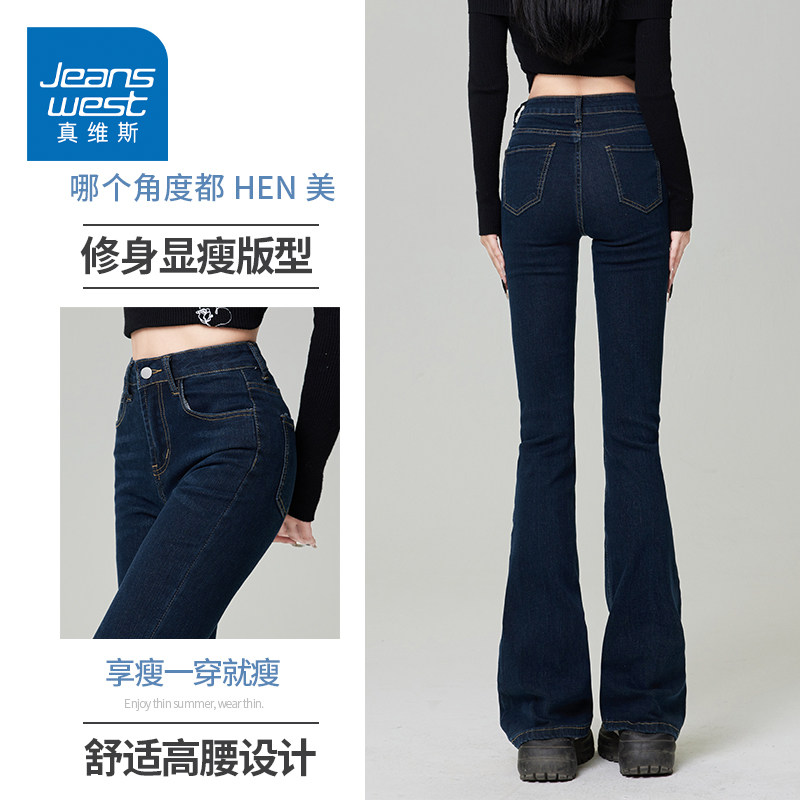 KZH真维斯微喇牛仔裤女秋冬新款修身马蹄裤蓝灰高腰显瘦阔腿长裤