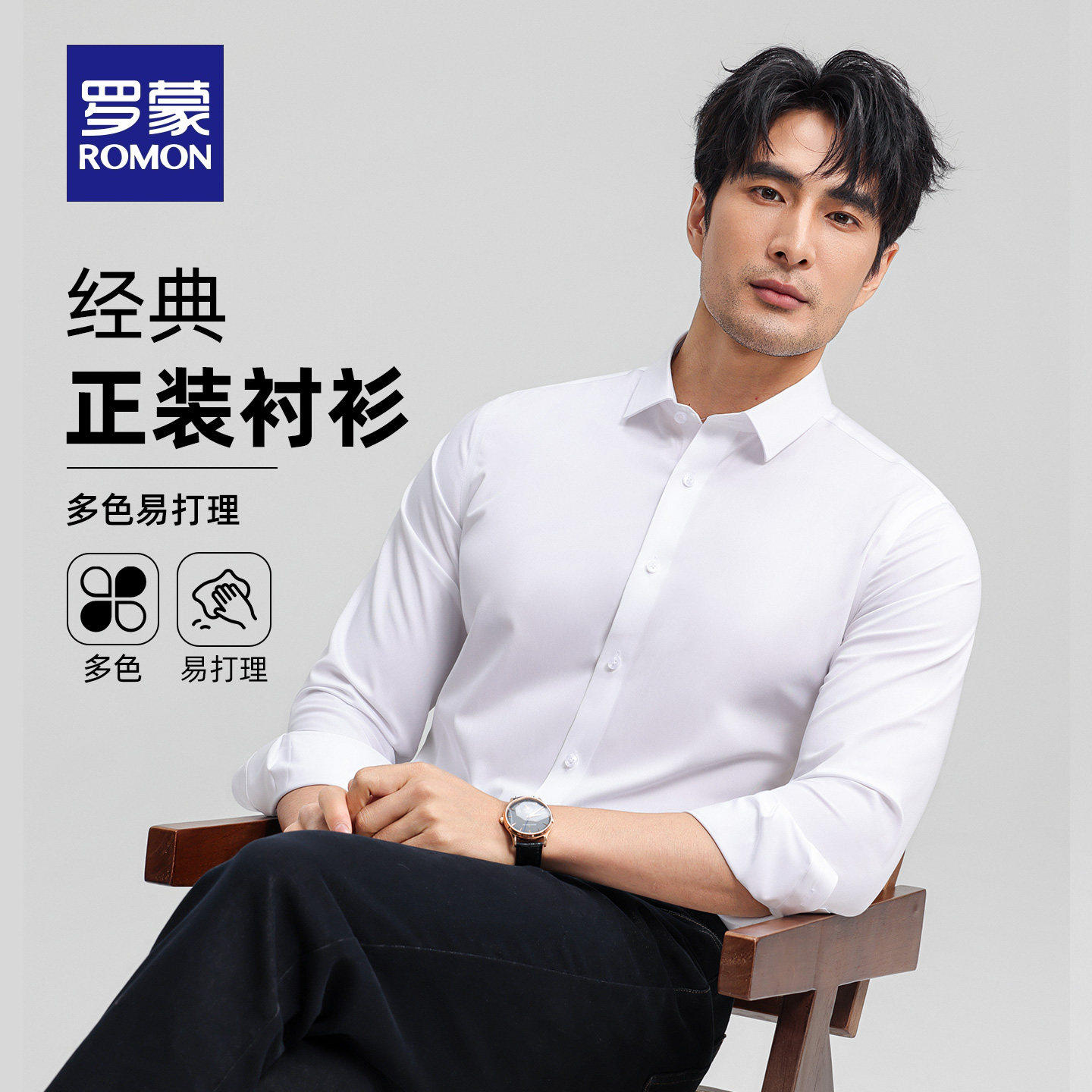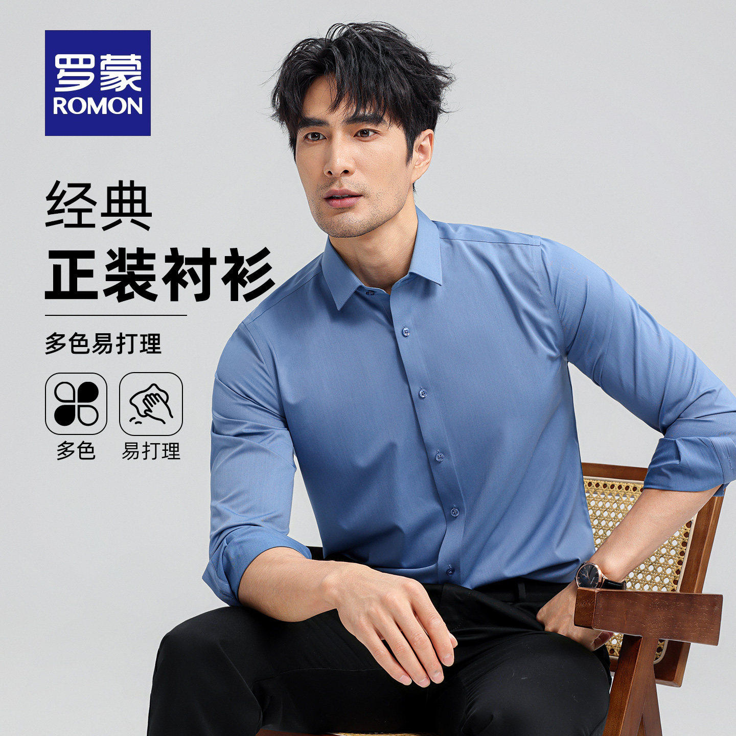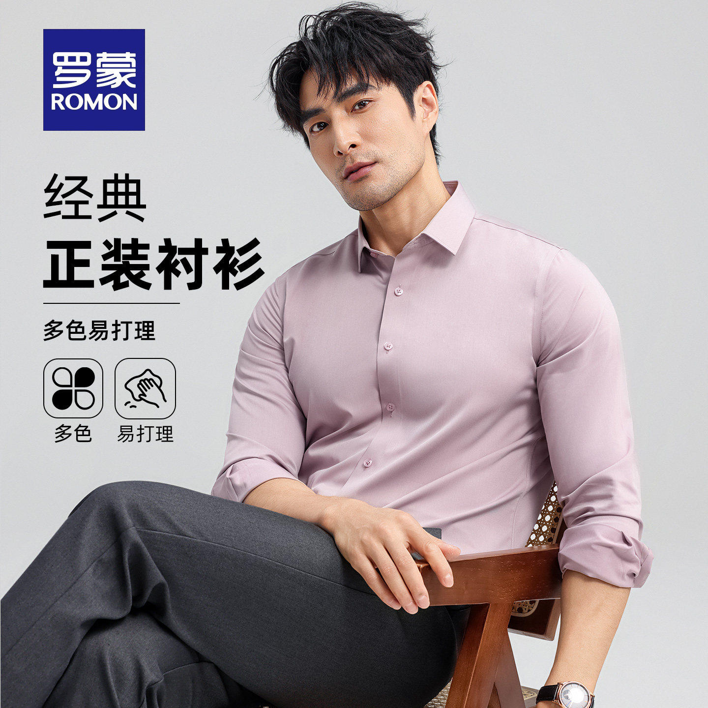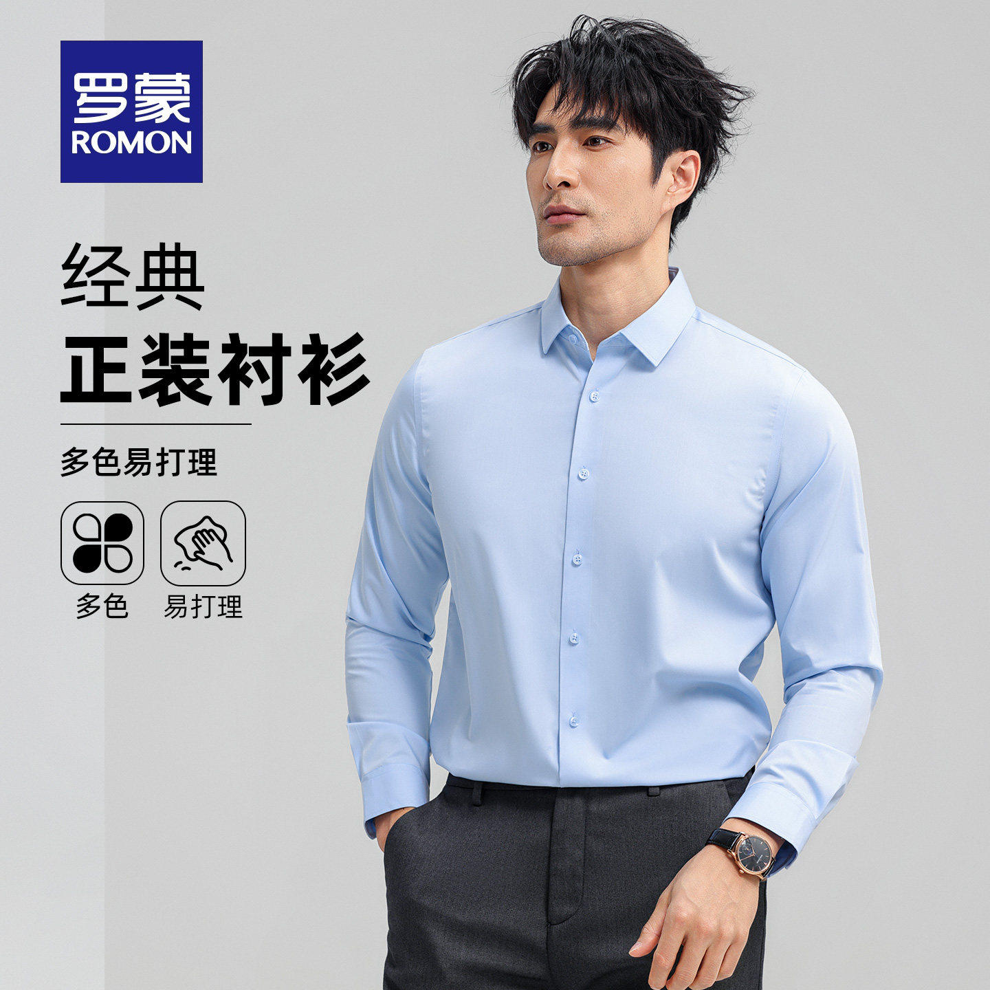 【弹力无痕】罗蒙男士长袖衬衫2026春季新款商务工装易打理衬衣男