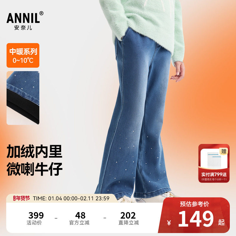 【加绒微喇】安奈儿童装女童牛仔裤2025冬新款潮流保暖加厚长裤