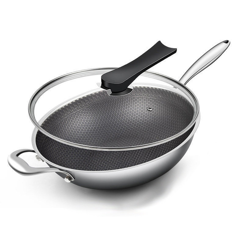 不锈钢炒锅炒菜锅不粘锅家用无涂层电磁炉专用燃气灶锅具食品级
