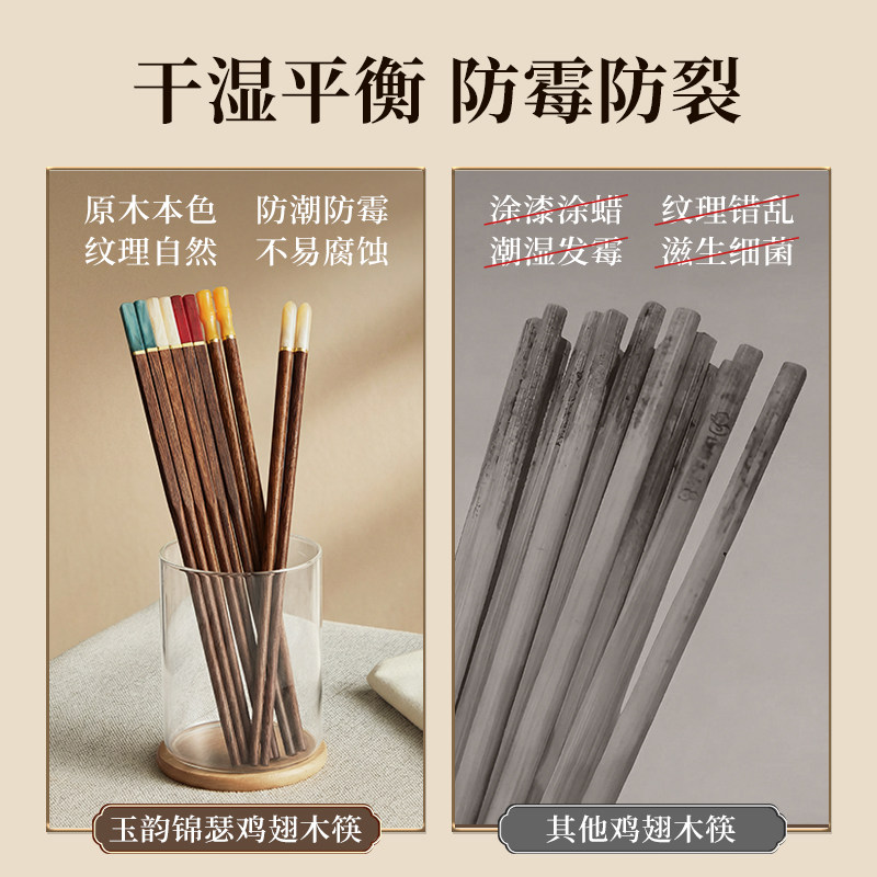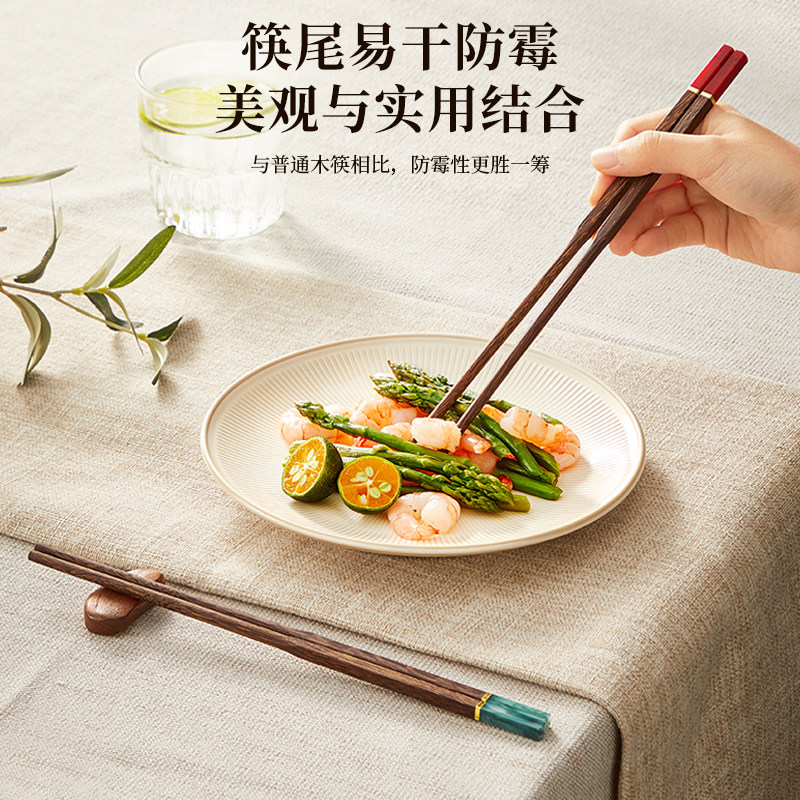 利瓷鸡翅木筷子家用防滑防霉木质快子10双20双家庭套装木箸