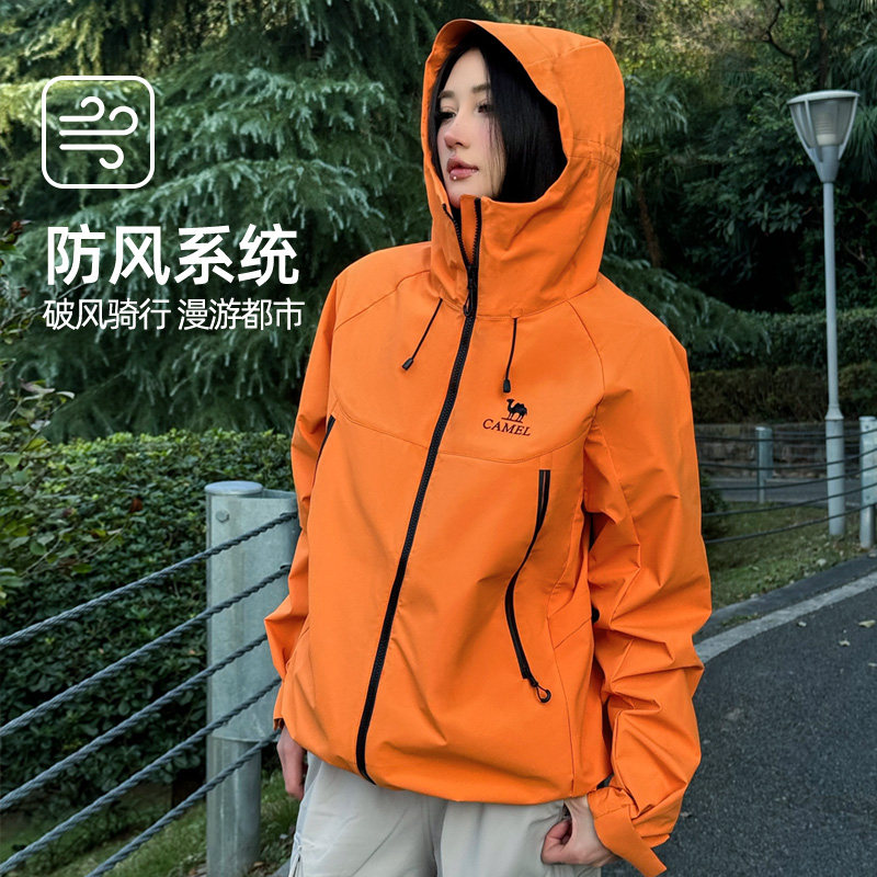 骆驼山海夹克2.0春秋款外套男橙色三防登山服2026新品连帽茄克